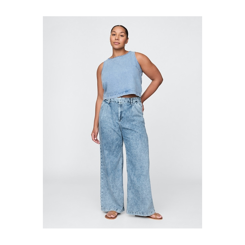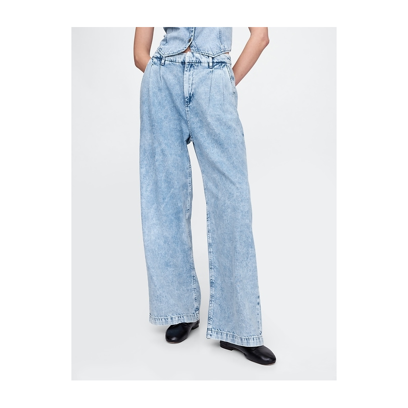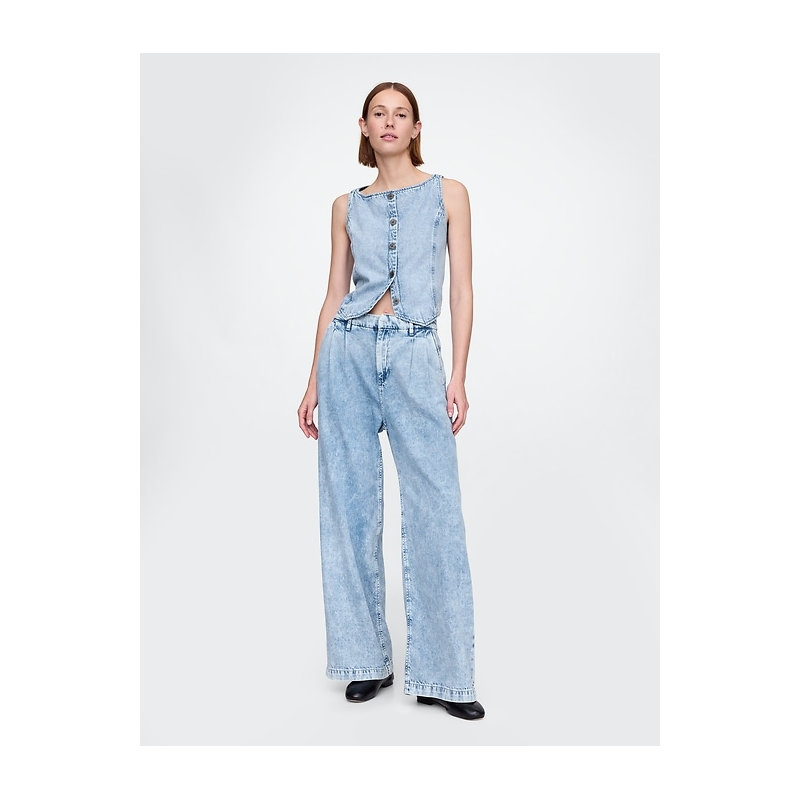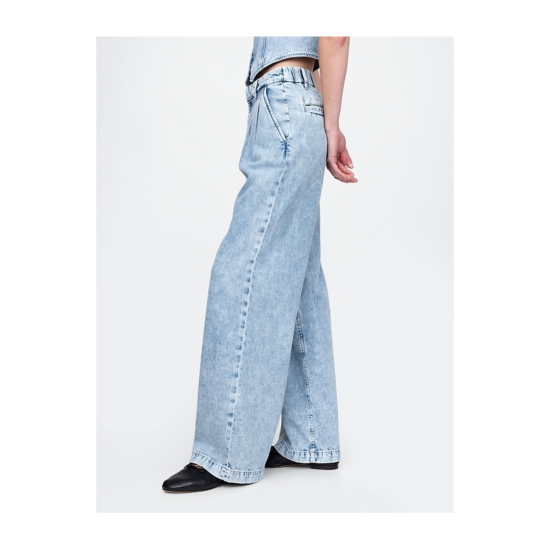 - Supersoft cotton-Tencel blend denim pleated trousers.