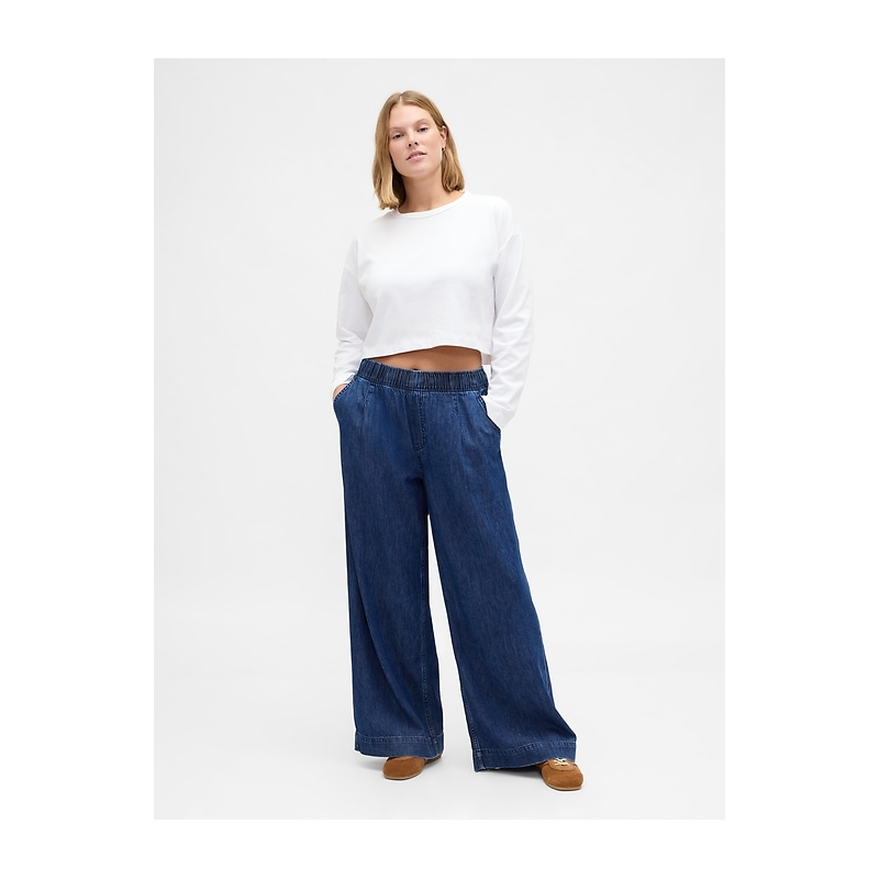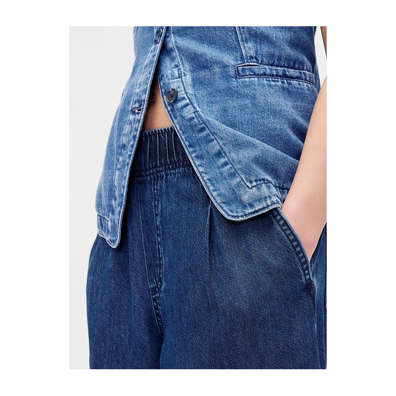- Look: A pull-on baggy jean in a dark indigo wash. ?