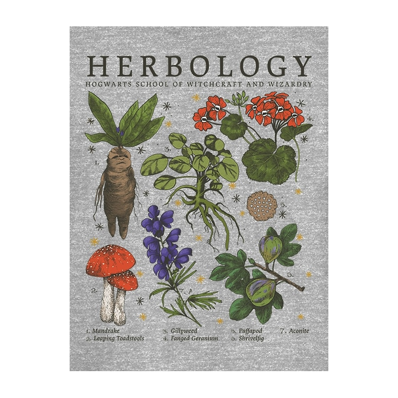 - Officially licensed Harry Potter Herbology Graphic at front..