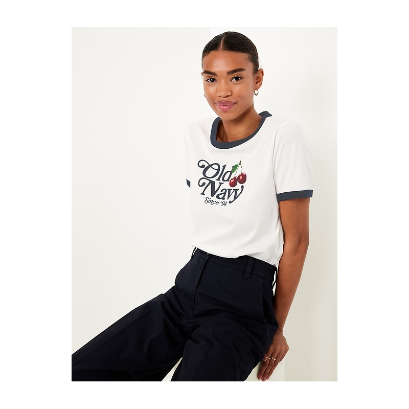 [US] OldNavy EveryWear Crew-Neck Logo-Graphic Ringer T-Shirt