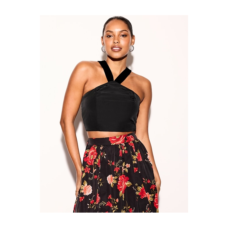 [US] The Occasion by Old Navy Taffeta Cropped Halter Bow Top