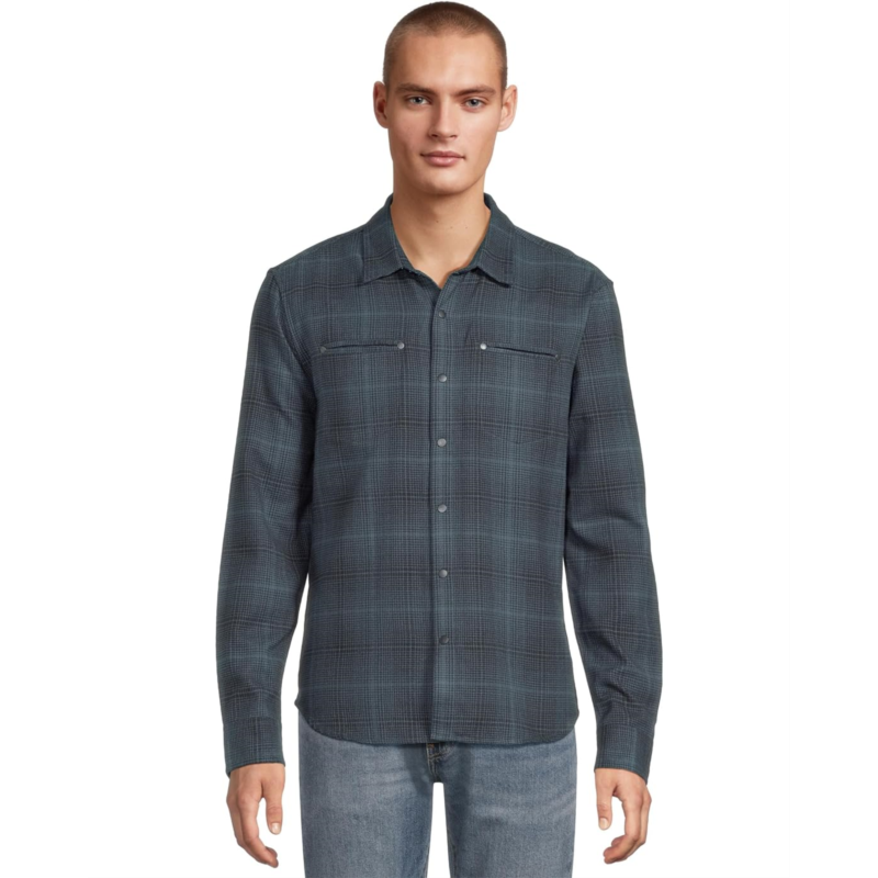 - The John Varvatos Dario Shirt W976W25 offers a soft texture with subtle structure, making it ideal for year-round wear. The classic plaid pattern is elevated by rivet detailing at the chest pockets, lending a utilitarian edge to its regular fit silhouette.
