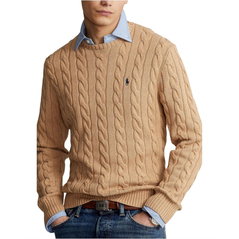 - Warm yourself up in the Polo Ralph Lauren Cable-Knit Cotton Sweater featuring a classic crew neck, cable knit sweater constructed with soft to the touch material. All day comfort ensured! Available in four stunning color options.