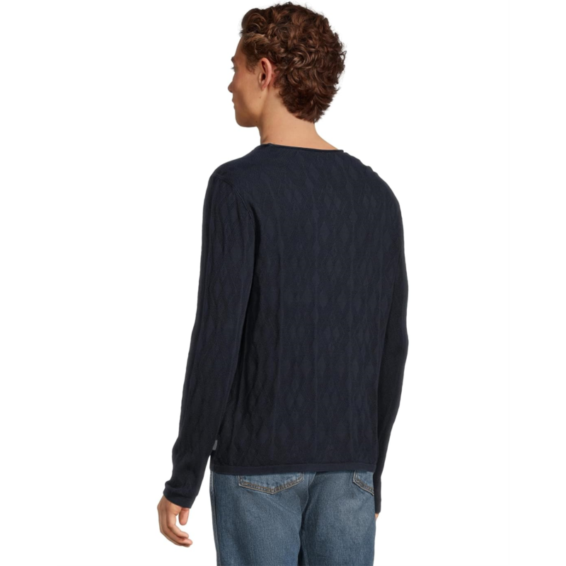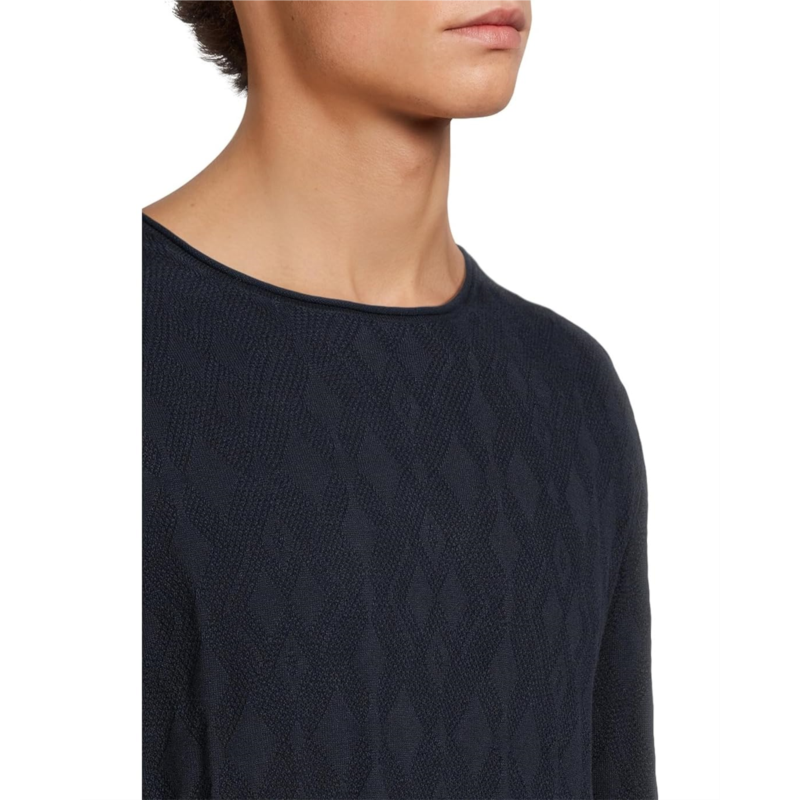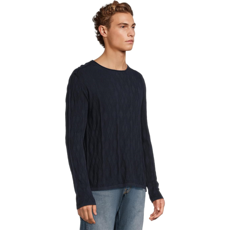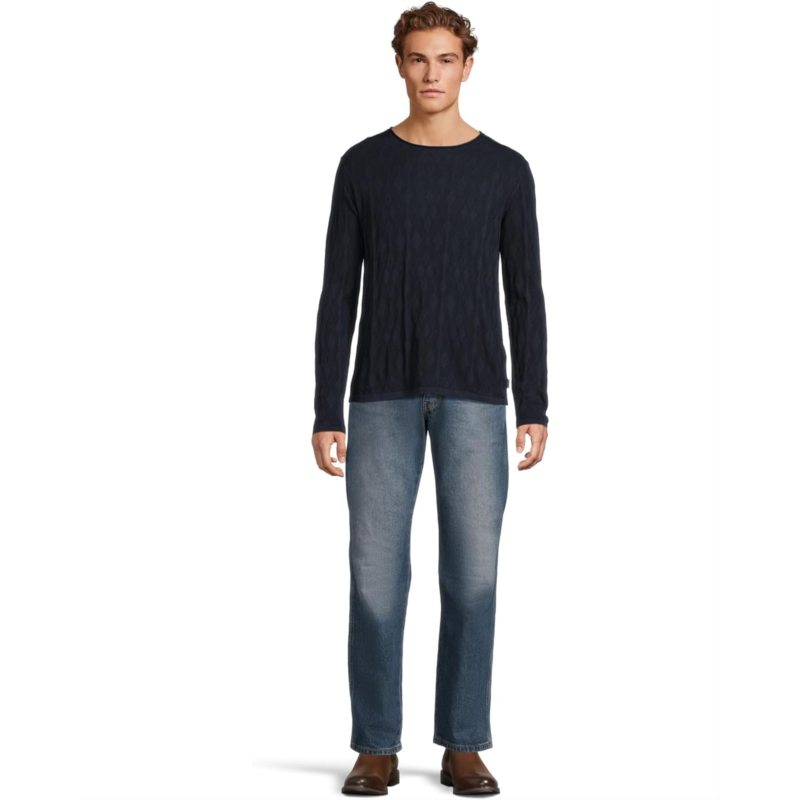 - The Brycen Crew features a geometric jacquard stitch in a broken argyle pattern, brought to life through a vintage wash that enhances its dimensional texture. Crafted in mercerized organic cotton, its finished with a subtle roll neck and forward shoulder seams for a polished but laid-back profile.