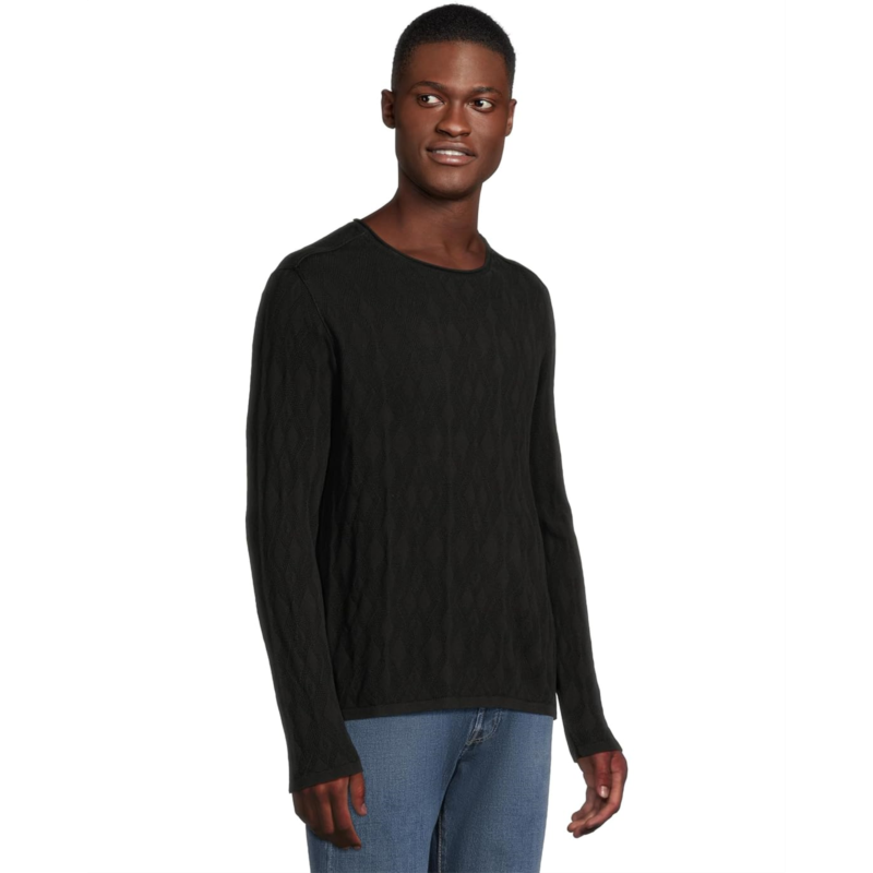 - The Brycen Crew features a geometric jacquard stitch in a broken argyle pattern, brought to life through a vintage wash that enhances its dimensional texture. Crafted in mercerized organic cotton, its finished with a subtle roll neck and forward shoulder seams for a polished but laid-back profile.