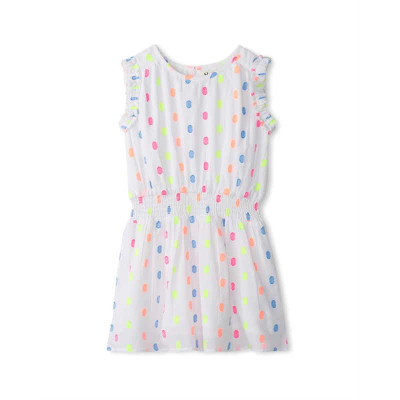 - Sprinkle some fun onto your little ones wardrobe with the Hatley Kids Summer Dots Woven Play Dress! This playful yet practical dress features ruffled sleeves, a cinched waist, smocked waistband for optimal comfort, and a centre back keyhole opening with button/loop closure. The bodice is lined while the skirt is single layered, making it ideal for those warm summery days filled with non-stop adventure.