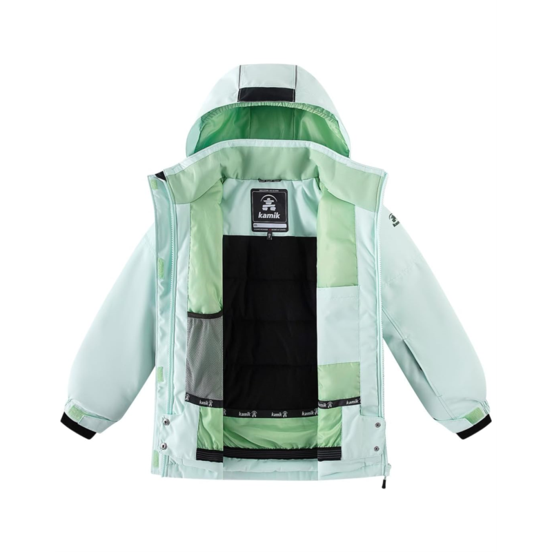 - Kamik Kids Carina is a waterproof, breathable cold-weather jacket perfect for all outdoor activities. The soft fleece jacket features a detachable fleece-lined hood with rear drawcord adjustment, long sleeves with adjustable touch-fasten cuffs, and a zippered front closure.
