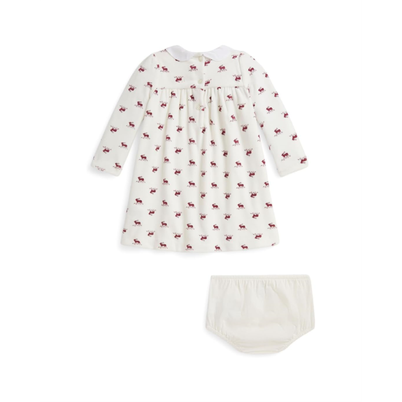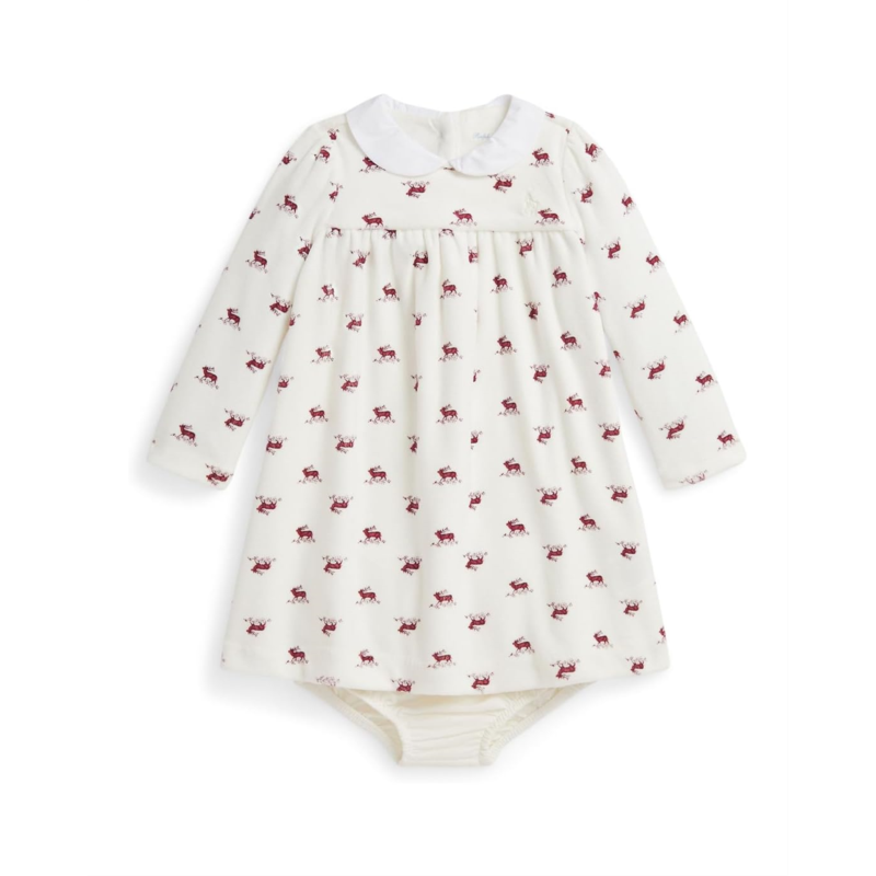 [US] Polo Ralph Lauren Kids Elk-Print Velour Dress & Bloomer (Infant)