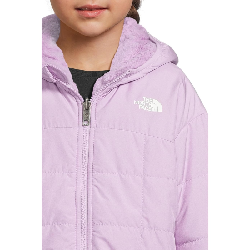 Please note, the logo and hardware color may vary in styles marked as Prior Season.- Gear up your kid for the chilly weather outside by dressing them up in The North Face Kids Reversible Shasta Full Zip Hooded Jacket. Featuring Heatseeker Eco insulation for all-day warmth, this jacket comes with a zippered front closure with an auto-lock slider and chin guard for easy wear. The long sleeves, slightly dropped shoulders, attached three-piece hood, and straight hem add to its appeal. Made from fleece fabric with a Non-PFC DWR finish, this zip-up jacket keeps your kid comfortable, warm, and dry. The elastic binding on the hood, cuffs, and hem keeps the elements out. Styled with a quilting pattern on the outer body and a reversible design that allows it to be worn from both sides, this insulated jacket offers durable weather protection.