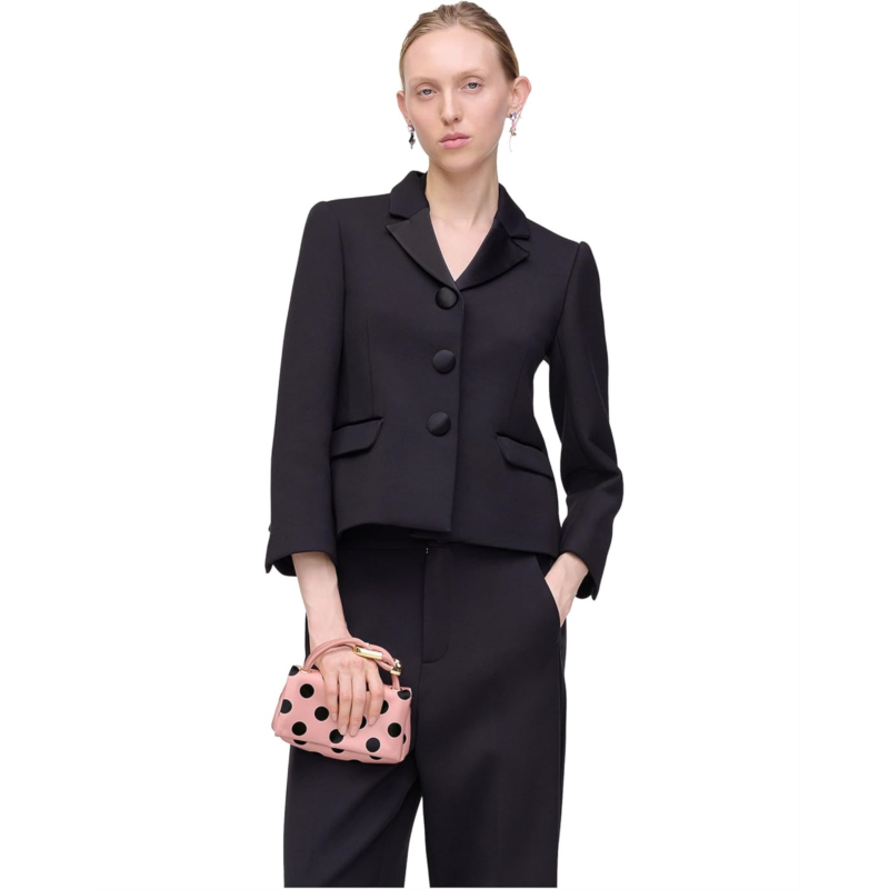 - Pocket-sized punch: The Marc Jacobs The Satin Dots Micro Dual: a micro bag delivering major personality and elevating your look. Crafted from luxe polyester with a matching polyester lining, this fashion-forward mini is designed to make a statement without the bulk. Covered in playful satin polka dots, its the perfect blend of whimsy and sophistication. Whether youre hand-carrying it to brunch or bringing it out for a glam night, this micro marvel keeps your must-haves close with two interior card slots for sleek organization. The magnetic closure ensures everything stays secure while you stay effortlessly stylish.