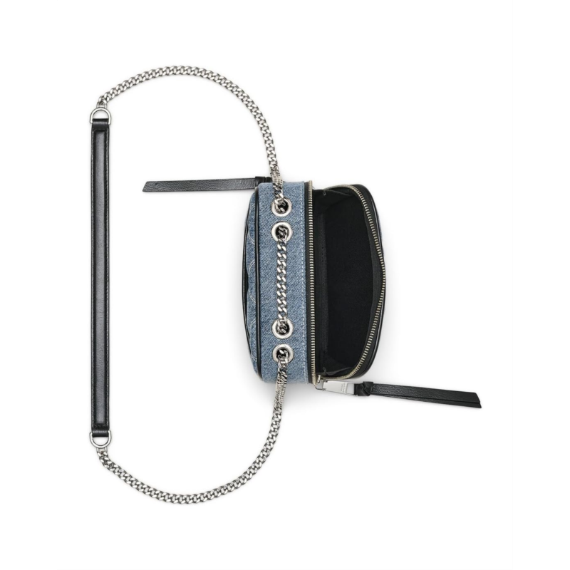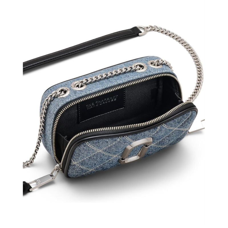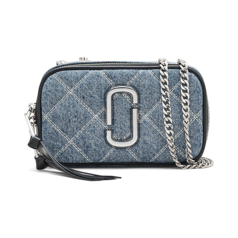 - Carry your small essentials in chic style in the Marc Jacobs The Quilted Denim Softshot. This crossbody bag features a two-way zipper closure and an external slip pocket with branding hardware on front.