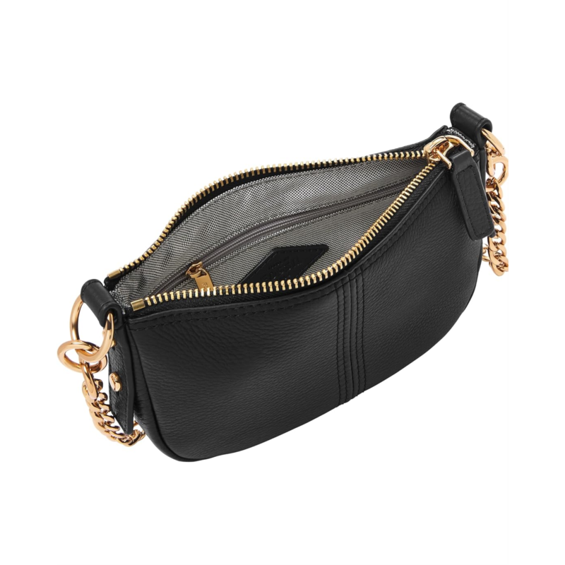 - Add a dose of style carrying the Fossil Jolie Mini Baguette Crossbody. This leather handbag features zippered closure, one adjustable crossbody strap with chain, and one zippered interior pocket to keep your cash safe.