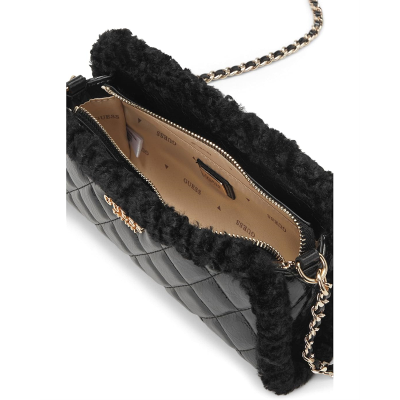 - The GUESS Cristi Top Zip Crossbody in quilted tweed features a woven chain shoulder strap that offers versatile styling options. This crossbody purse is designed with a zippered closure that opens to an interior compartment with a card slip. Styled with shiny gold hardware, this quilted purse is perfect to pair with different outfits and styles.