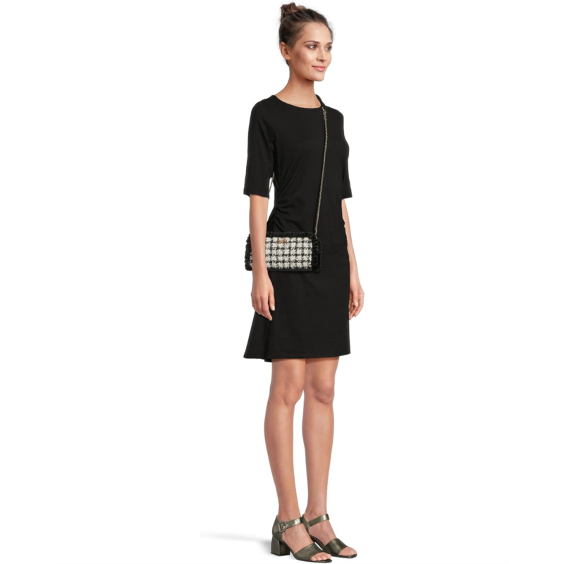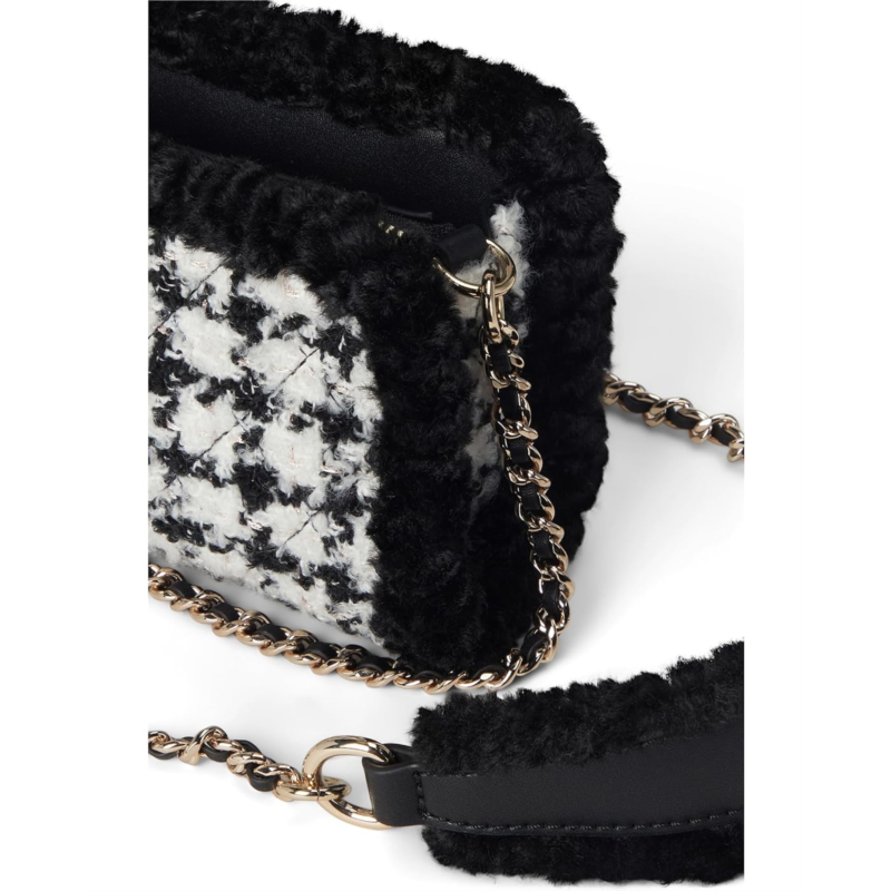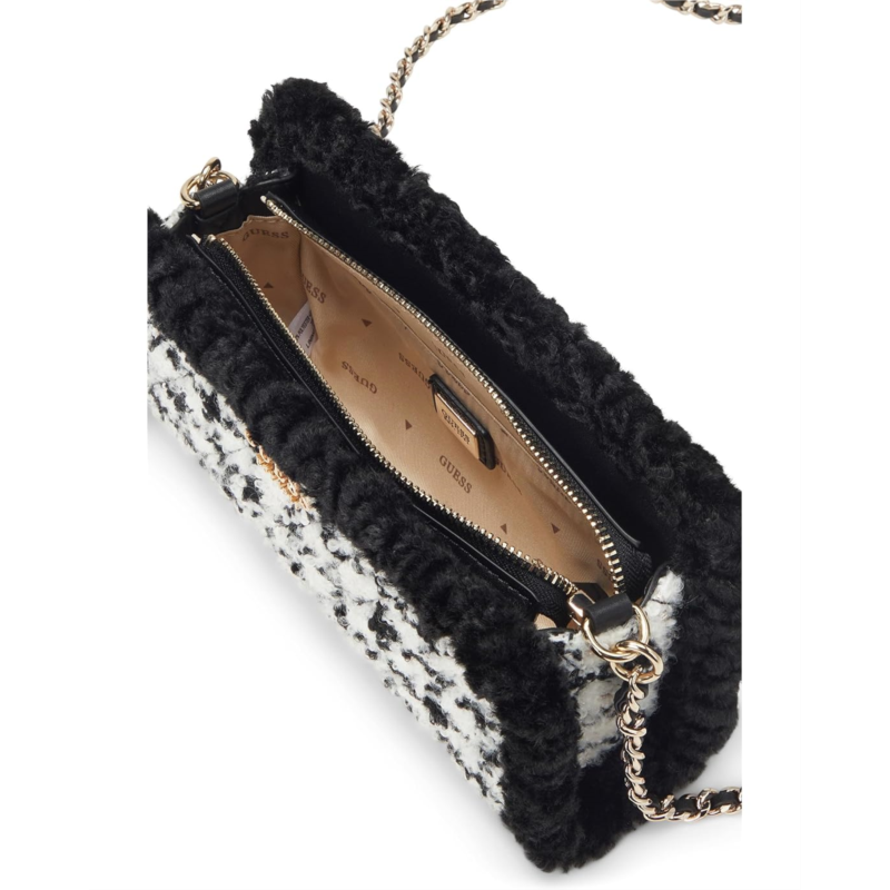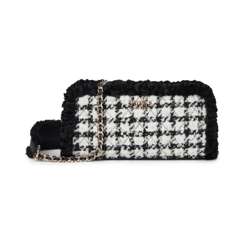 - The GUESS Cristi Top Zip Crossbody in quilted tweed features a woven chain shoulder strap that offers versatile styling options. This crossbody purse is designed with a zippered closure that opens to an interior compartment with a card slip. Styled with shiny gold hardware, this quilted purse is perfect to pair with different outfits and styles.