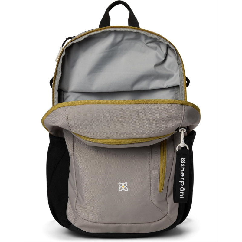 - The Sherpani Getaway is your ultimate travel sidekick - whether you''re city hopping or hiking remote trails, this lightweight backpack is built for all-day comfort and effortless organization. Crafted with durable nylon and a soft recycled polyester lining, it features a front compartment, main compartment, padded laptop sleeve, and a hidden zippered top pocket for stashing valuables. Dual water bottle pockets keep hydration handy, while the front vertical zippered pocket with a secure zipper lock offers extra peace of mind. A Sherpani key chain adds a personal touch, and the adjustable sternum strap ensures a snug fit on the move. Smartly designed to fit under airplane seats, this bag is the perfect personal item or minimalist pick.