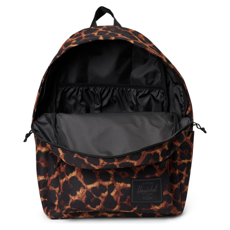 - The Herschel Supply Co. Herschel Classic Backpack keeps things simple while being truly functional. Made from 100% recycled 600D polyester, its built for everyday use with a spacious 26L capacity and a clean silhouette. Inside, a floating sleeve protects 13/14 laptops, while the tonal stripe liner adds a subtle signature touch. Zippered closures with Prusik cord pulls, an exterior zippered pocket, and a water bottle pocket offer practical storage, and padded adjustable straps ensure a comfortable carry.