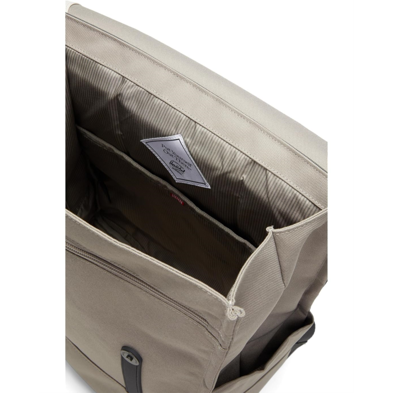 - Made to move. Designed to navigate city terrain by bike or foot and streamlined to glide through crowded buses and trains, however you commute, the Herschel Supply Co. Herschel Survey Backpack carries your workday essentials. Made from 100% recycled 600D polyester, this backpack features a padded and fleece-lined floating sleeve that fits a 15/16 laptop. It is designed with a side storage sleeve for quick-reach items, a hidden zippered storage sleeve, and a water bottle pocket that expands to fit different sizes. Easy to wipe clean with a damp cloth, this laptop backpack has two adjustable shoulder straps and a top grab handle that make it convenient to carry around.