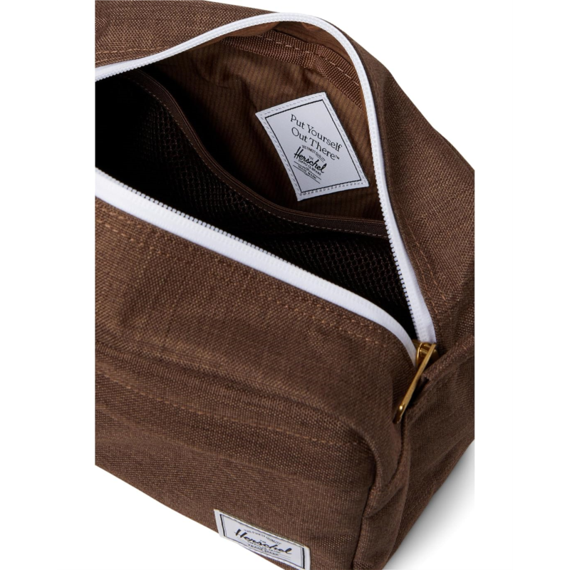 - Keep all your travel accessories safe with the Herschel Supply Co. Chapter Travel Kit bag. This bag comes with an interior mesh storage sleeve, one zippered exterior pocket, and a zippered closure to give your bag a tidy, attractive, and presentable appearance.