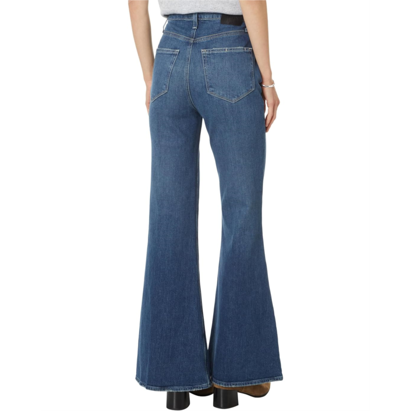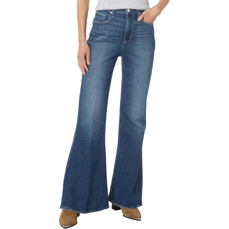 Find your perfect fit in the Paige Charlie 32'' in Mixtape. This jeans is fitted through the hip and thigh, opening to a flare from the knee down. Featuring high rise silhouette, classic five-pocket style, zip-fly, and button closure. This fabric seamlessly blends comfort with everything you love about authentic denim to create super soft jeans that feel perfectly lived-in from the very first wear.
