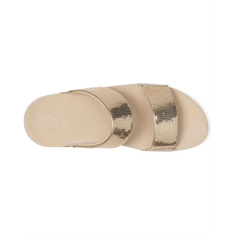 Step into comfort and style choosing the FitFlop Lulu Sequin sandals. These sandals feature dual strap design and sparkling sequins upper that will add a touch of glam to any outfit. The Microwobbleboard midsole provides all-day support and cushioning, while the leather and textile upper and textile lining ensure a comfortable fit. Complete with a padded insole, these sandals are perfect for all-day wear.