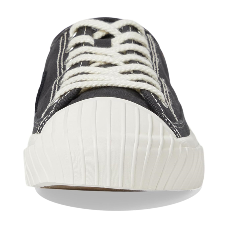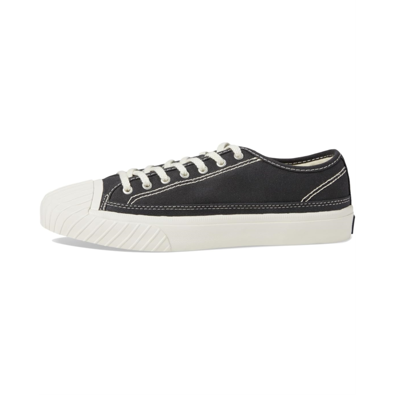 Round toe silhouette with a non-marking vulcanized rubber toe cap.