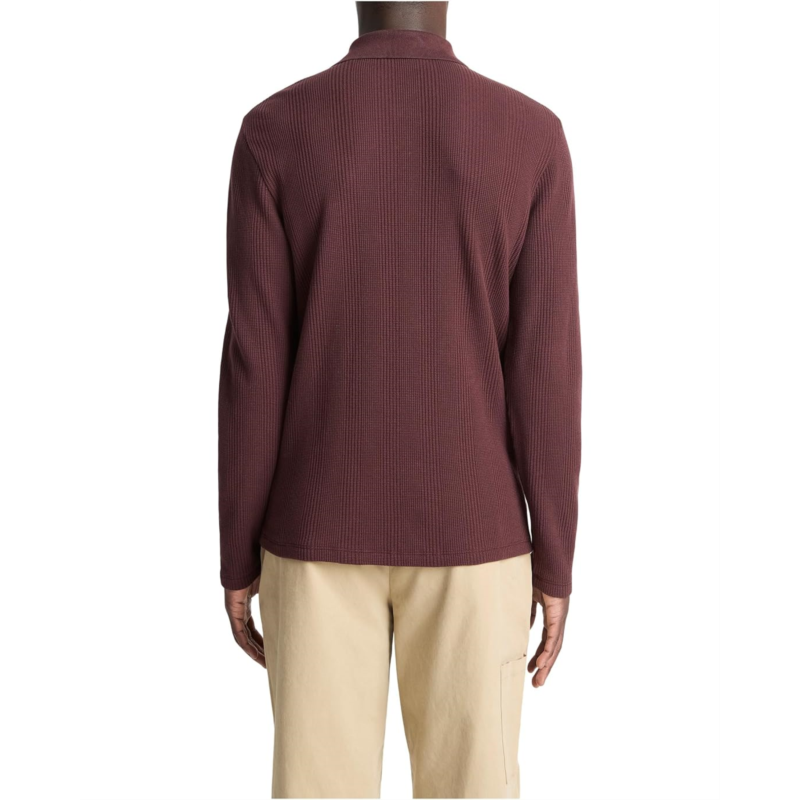 The Vince Variegated Texture Long Sleeve Polo is a timeless wardrobe staple that combines casual elegance with versatility. This essential pull-on style polo shirt is crafted from soft cotton with a textural, variegated waffle finish for cooler days ahead. It features a collared neck with a quarter-button closure, long sleeves, and a straight hem.