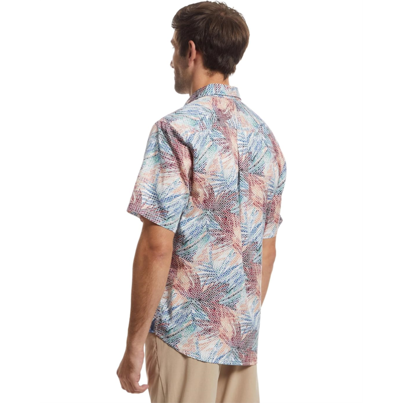 Sun-soaked vibes meet effortless island style wearing the Tommy Bahama Tortola Cartago Palms. Crafted in a regular fit, this short-sleeve printed camp shirt is your go-to for breezy sophistication, perfect for beachside lounging or city strolls. The collared neck and button-front closure give it a polished yet relaxed feel, while the shirttail hem and chest pocket with rounded button-through detail add function and charm. The all-over palm print channels laid-back tropical energy, making it easy to pair with shorts, chinos, or linen trousers.