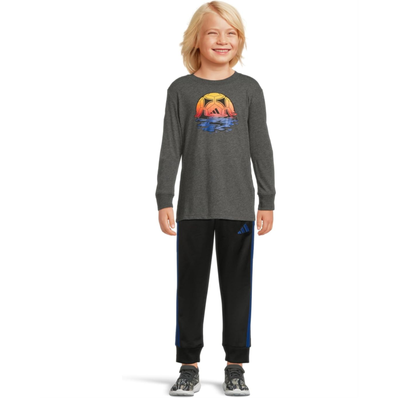 Adidas Kids Long Sleeve Sport Graphic Heather Tee (Toddler/Little Kid)