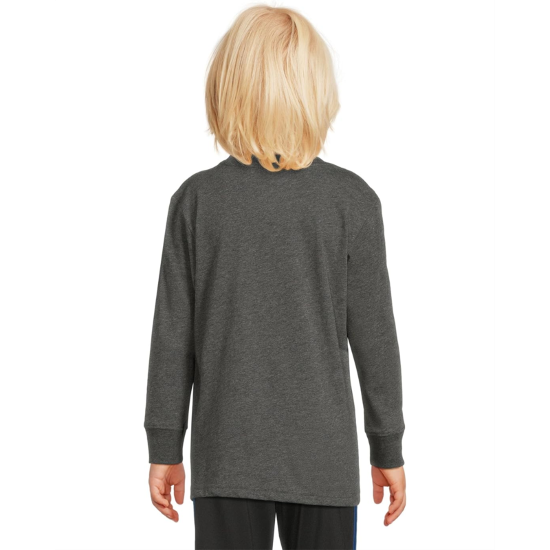Kids will be ready for anything in this adidas Kids Long Sleeve Sport Graphic Heather Tee. The soft, heathered fabric feels comfortable all day, while sports graphics add a fun touch. Perfect for everything from weekend lounging to post-practice relaxation. The regular fit, plus a ribbed crew neckline and long sleeves, make it extra comfortable for everyday wear.