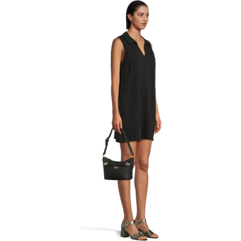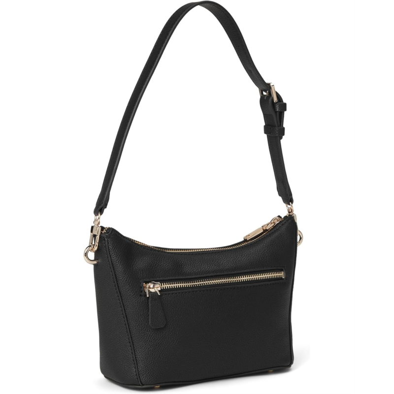 The GUESS Gregoria Top Zip Shoulder Bag in eco pebbled polyurethane features a belting detail. Its zippered main compartment opens to a zippered pocket and three card slips. Designed with an adjustable and detachable shoulder strap, this stylish shoulder bag is a great choice to complement your casual outfits and party looks.