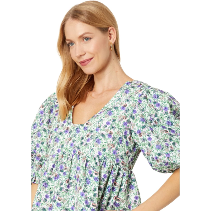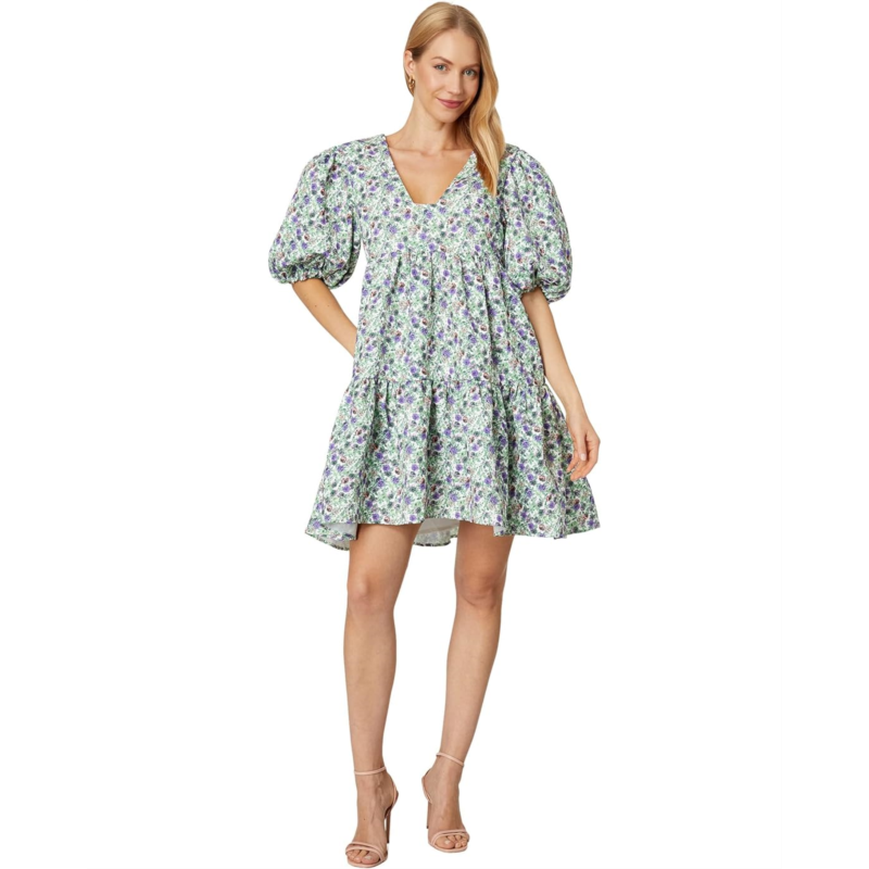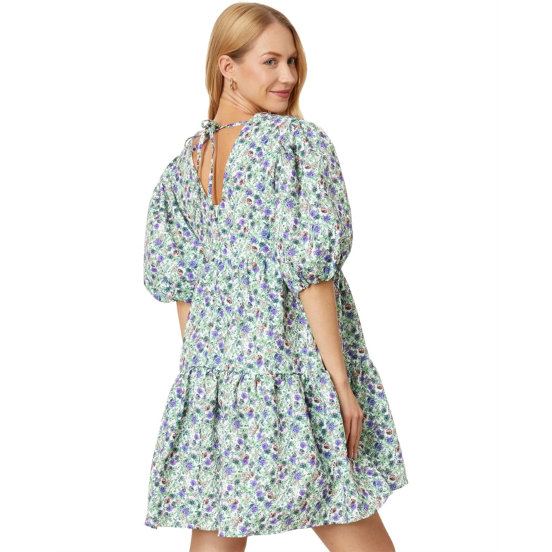 - Embrace the beautiful romantic vibe in this breezy English Factory Floral Puff Sleeve Jacquard High-Low Dress.