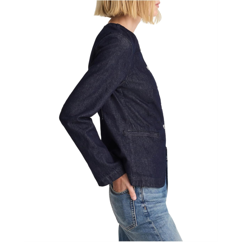- Maintain your chic, yet modern, style with the Madewell Collarless Jacket In Rinse. This jacket offers a jewel neckline with a front button closure, long sleeves and front welt hand pockets.