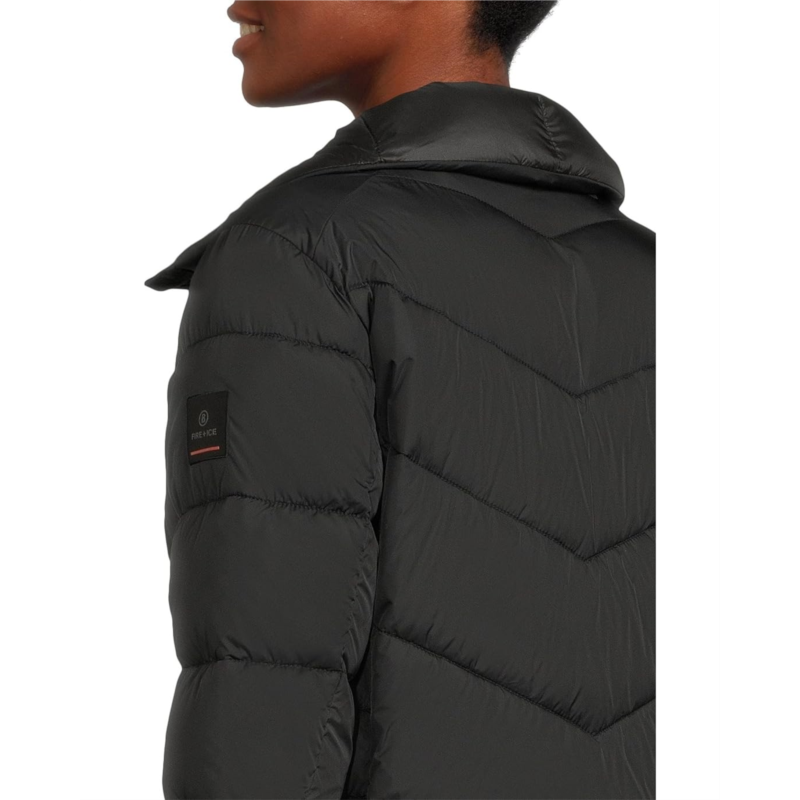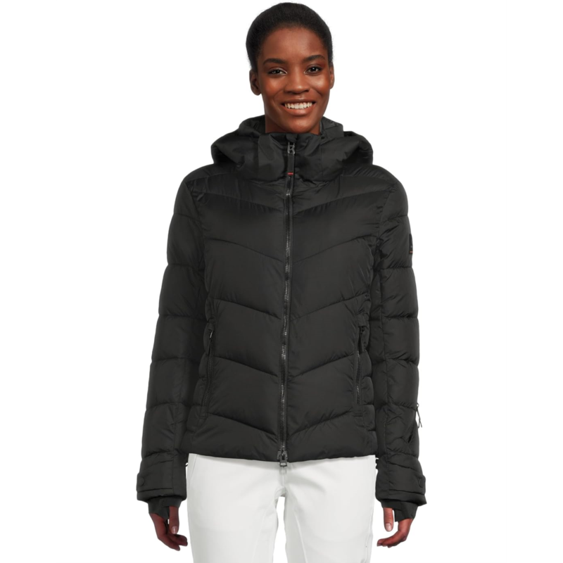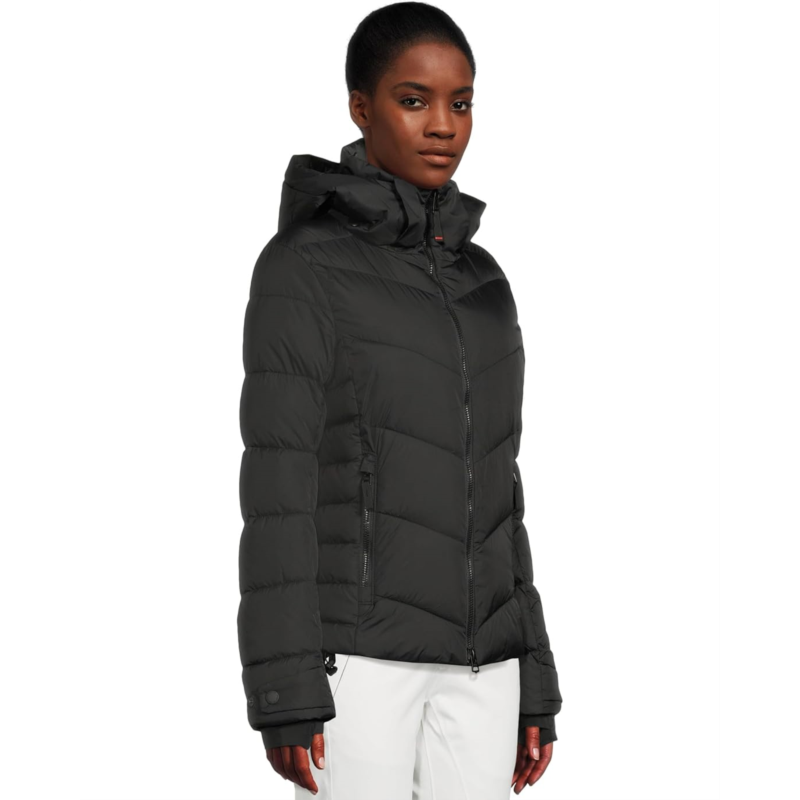 - Shine on the slopes with eco-luxe style wearing Bogner Fire + Ice Saelly2. Crafted from water-repellent recycled polyamide (RCS certified) and filled with cozy THERMORE Ecodown fibers, it keeps you warm while staying kind to the planet. The straight-cut silhouette offers effortless layering, while the detachable hood with snap buttons, drawstrings, and elasticized cord ties gives versatile coverage. Fasten the two-way zipper with signature ''B'' logo pendants and enjoy the shiny FIRE+ICE print on the zipper underlap for a bold, stylish touch. Functional details abound: zippered hand pockets, a zippered pocket on the side back, sleeve pocket, snow guard with snap buttons, stretch jersey cuffs with thumbholes, and adjustable sleeve hems and hem drawstrings.