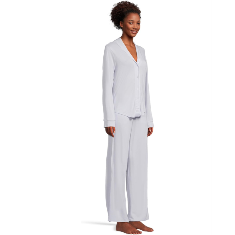 - An elevated take on everyday comfort, this collection reimagines a beloved sleepwear in sustainable, ultra-soft Pima cotton and modal jersey. The Pima Lusso Long Sleeve Top & Pants Pajama Set features a long sleeve top and relaxed pants, designed for softness that lasts from slow mornings to cozy nights in. Long sleeve top and pant set. Relaxed fit button down top. Straight-leg pant with a soft stretch waistband and discreet side pockets. Flat satin piping in tonal or contrast colors. Sustainable, breathable pre-shrunk fabric, wrinkle-free, and pill-resistant.