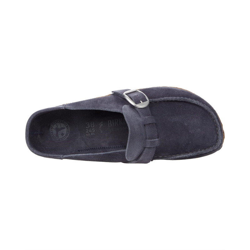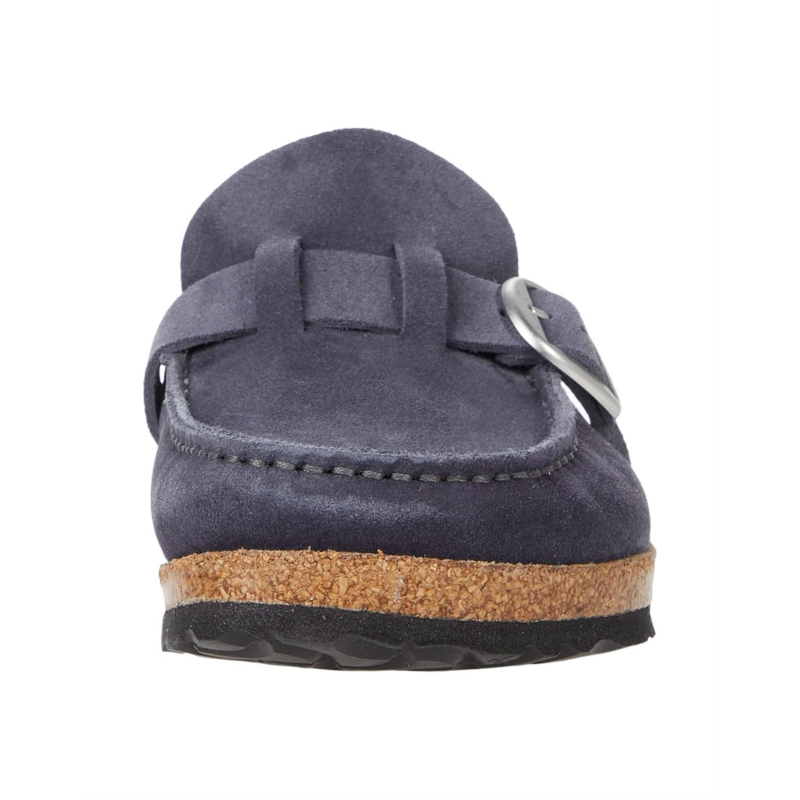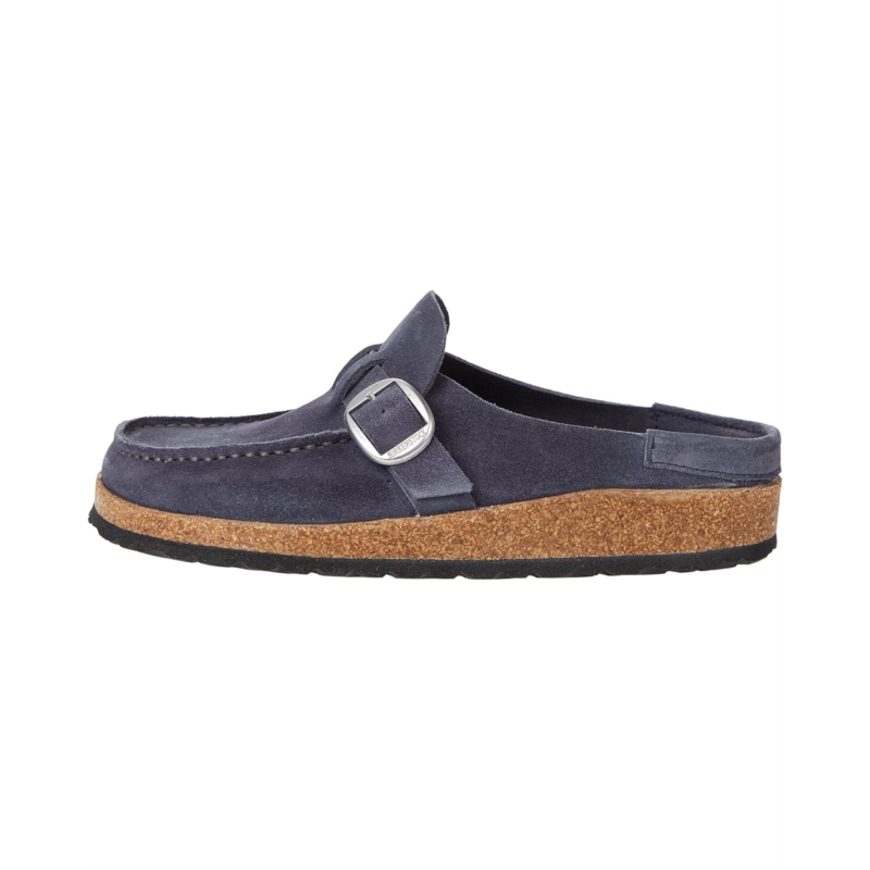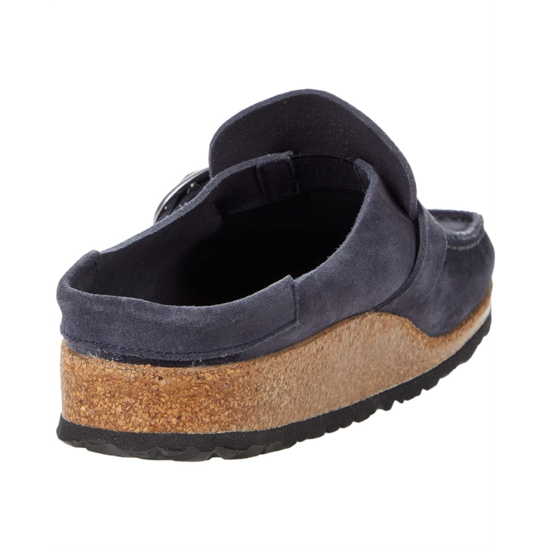 - The BIRKENSTOCK Buckley is a semi-open moccasinkorea clog thats instantly recognizable as an authentic BIRKENSTOCK original thanks to its thick cork sole. The striking stitching catches the eye. This version comes with our popular Big Buckle. Its natural design is down to the upper made from especially soft suede, which hugs the foot like a second skin.