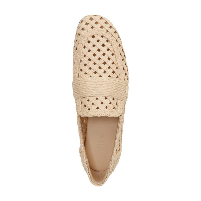 - Walk with greater confidence wearing Vince Davis Raffia footwear. A slip-on style, round toe, and cutout design make them perfect for hot days. They are woven from natural raffia upper, leather lining, and leather insole.