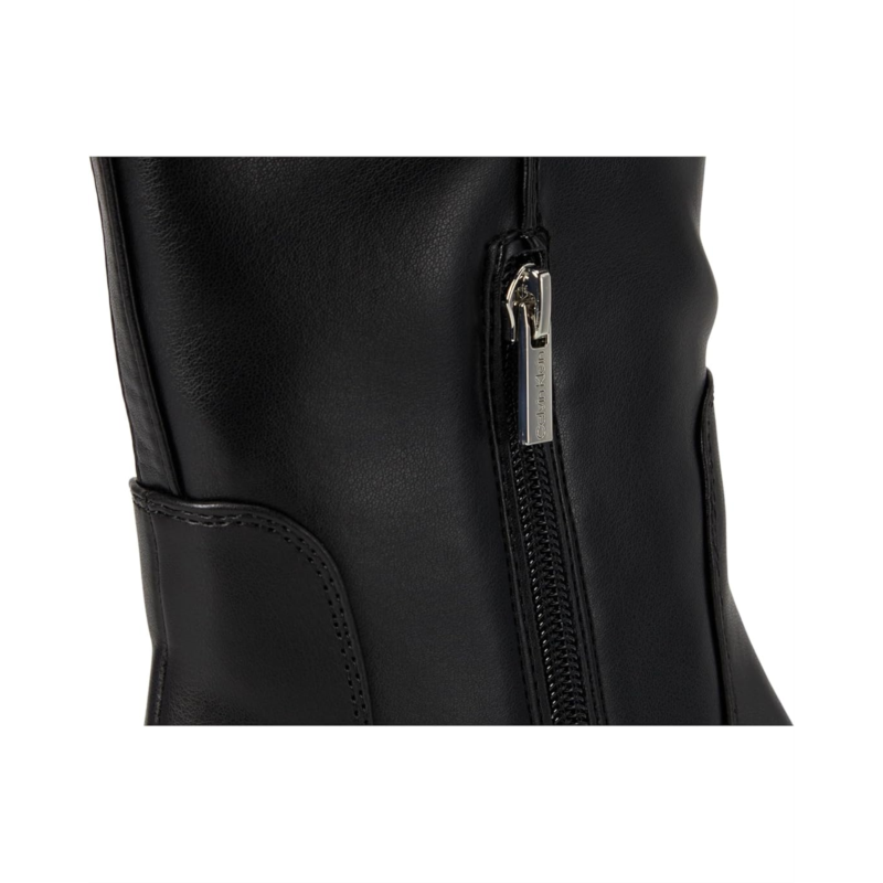 - Command attention and confidence with every stride in the Calvin Klein Pauline dress boots. Crafted with a sleek faux leather upper and a tall, knee-high silhouette, these boots redefine modern sophistication. The almond toe and block heel add timeless polish, while the zippered closure ensures effortless wear. A textile or manmade lining keeps you comfortable, and the durable synthetic rubber outsole provides stability from day to night. Designed to elevate everyday ensembles, the Pauline is your go-to for power dressing and effortless chic.
