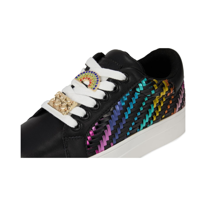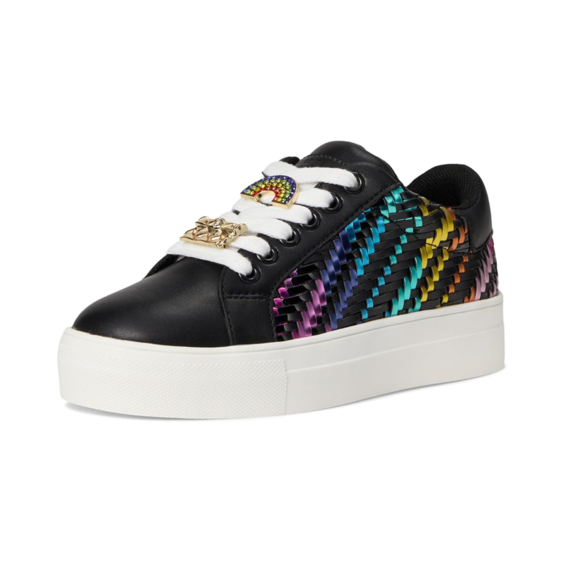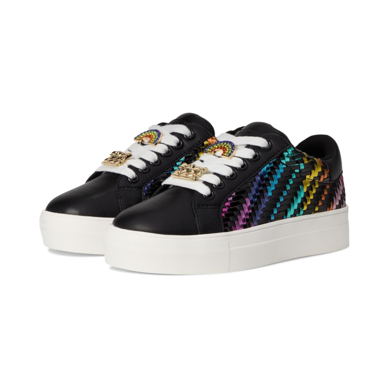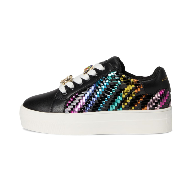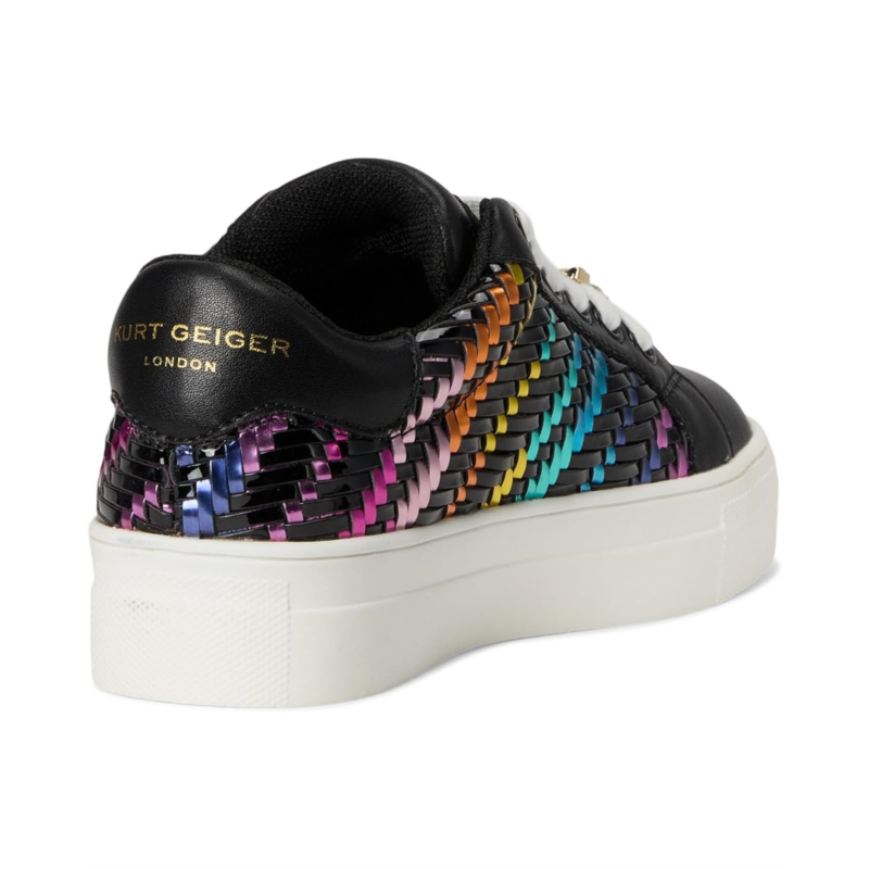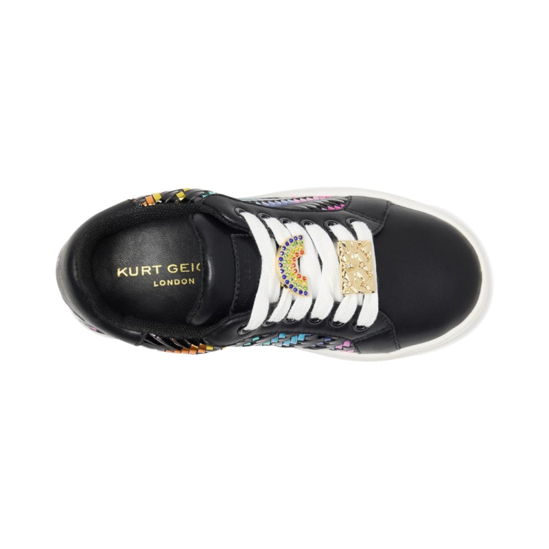 - Step up their style with the Kurt Geiger London Kids Mini Laney Weave Sneaker! This standout design features a woven rainbow metallic side panel that adds a bold pop of color against the sleek black leather upper. Signature jeweled lace embellishments bring extra sparkle, while the chunky white platform sole provides all-day comfort.