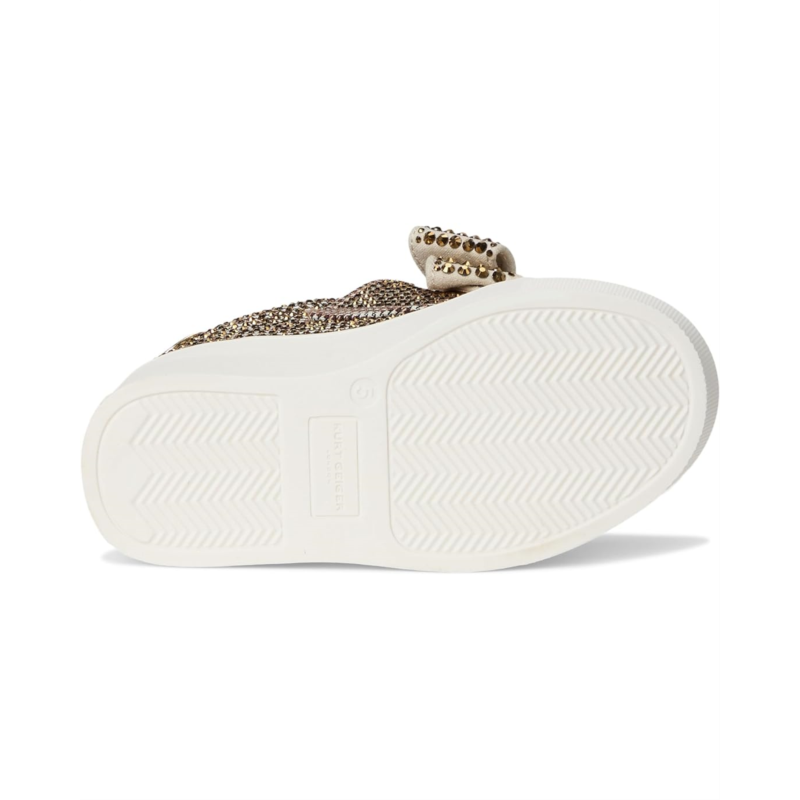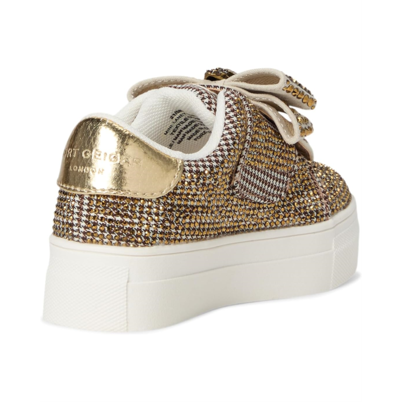 - Accented with a signature eagle''s head and bow for a sparkling charm, the Kurt Geiger London Kids Mini Laney Bow sneakers lend a stylish touch to your look. The shoes have a smooth leather upper, and a padded man-made footbed.