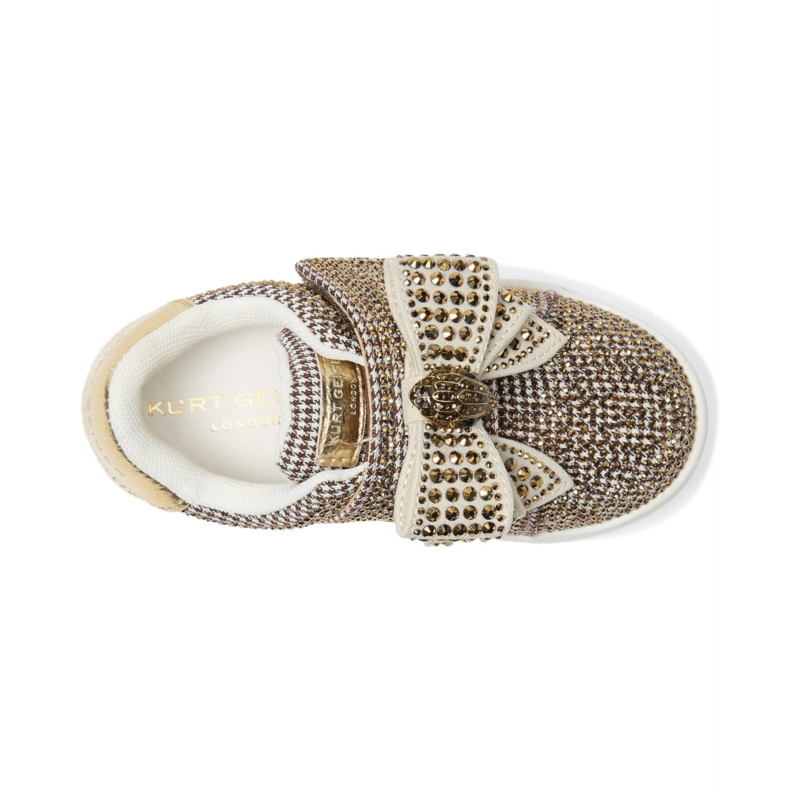 - Accented with a signature eagle''s head and bow for a sparkling charm, the Kurt Geiger London Kids Mini Laney Bow sneakers lend a stylish touch to your look. The shoes have a smooth leather upper, and a padded man-made footbed.