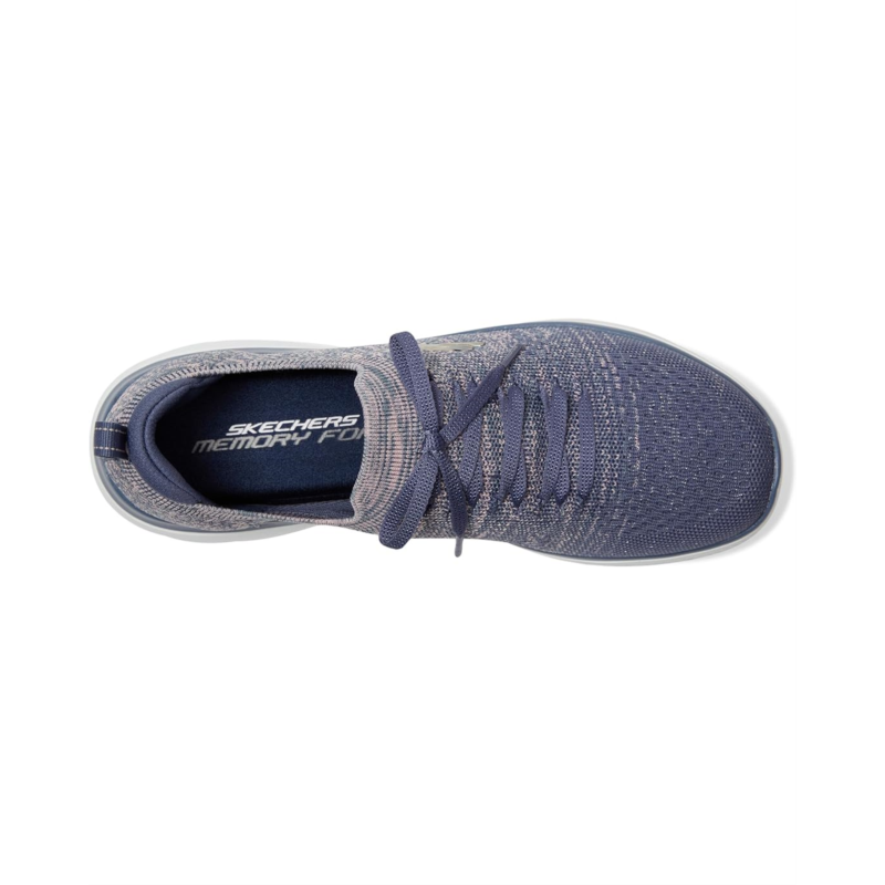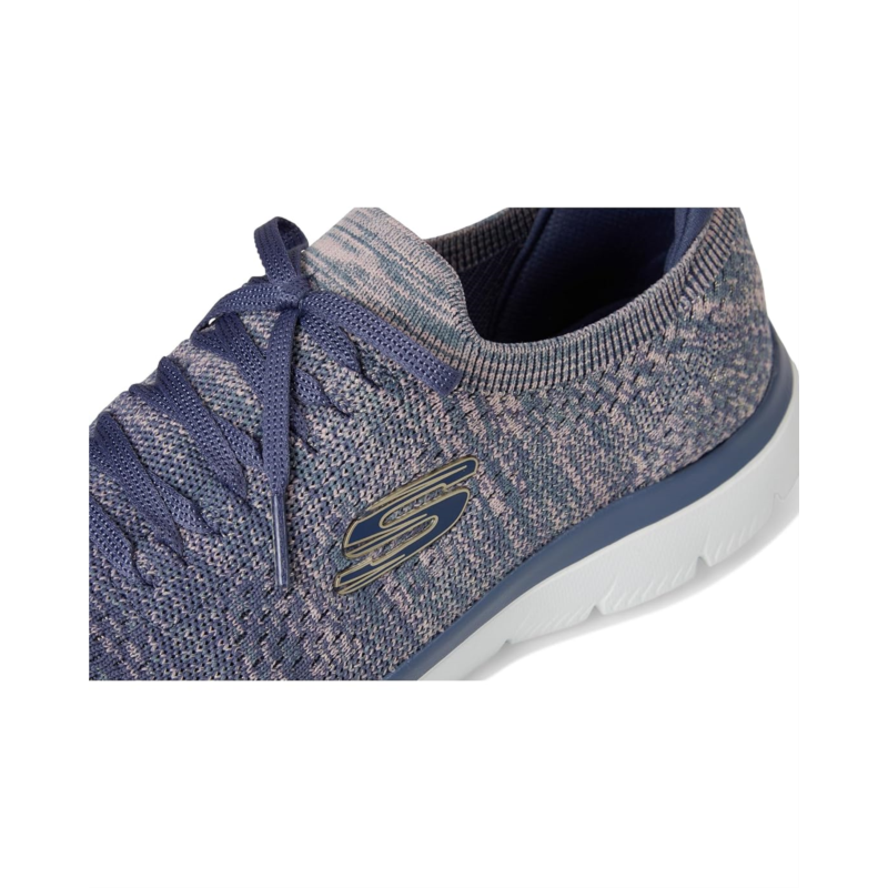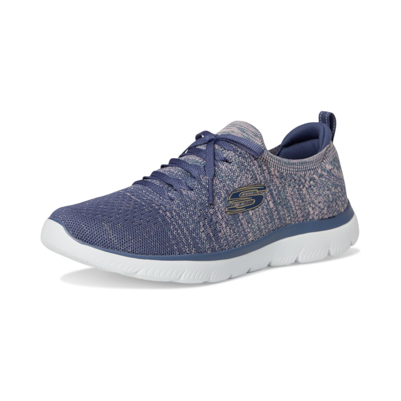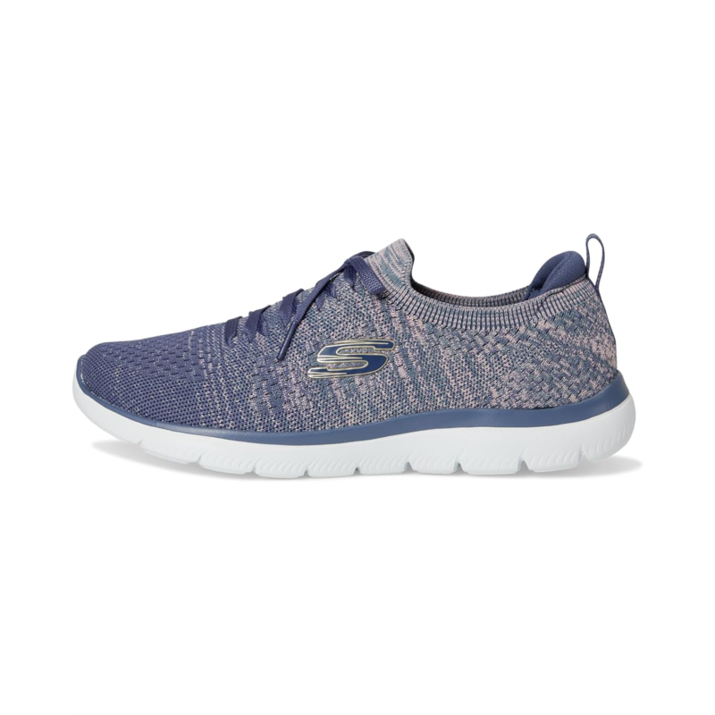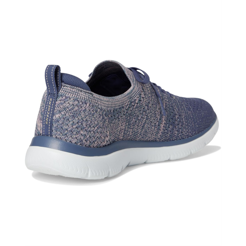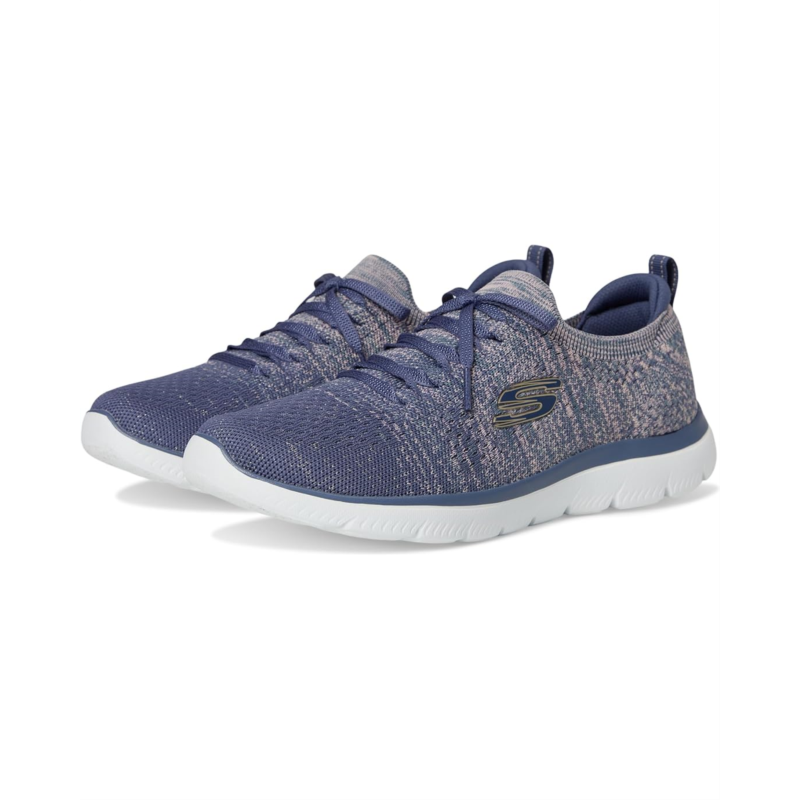 - Glow up your gait, Skechers Summits-sweet Glow. Designed with an engineered stretch knit upper in a metallic space-dye finish, these sneakers deliver a sparkling, eye-catching look. The easy-on, no-tie fit features fixed decorative laces and a convenient bungee closure, offering a sock-like stretch fit for effortless wear. Inside, the memory foam cushioned insole cradles your feet in plush comfort, while the lightweight, shock-absorbing midsole and flexible traction outsole make every step smooth and energized. Unlined for breathability and ultra-flexible for natural movement, the Summits-Sweet Glow keeps up with every adventure, from playground races to casual outings. Finished with a sleek Skechers logo detail, this style blends trend-forward flair with functional design, letting young feet shine with comfort, confidence, and sparkle wherever they go.