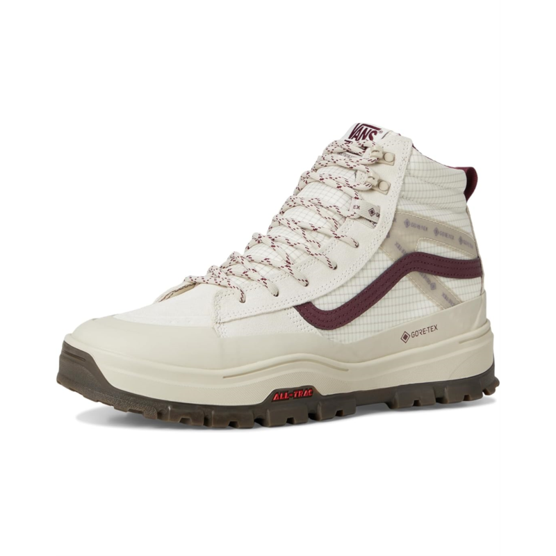 - The Vans MTE SK8-Hi GORE-TEX Insulated shoes are engineered for all-terrain performance, offering maximum protection from the elements without sacrificing style. Built with a combination of leather, textile, and synthetic uppers, these high-tops feature GORE-TEX breathable waterproofing to keep feet dry in wet conditions. Inside, insulation helps retain warmth, making them ideal for colder climates. The rugged rubber outsole delivers reliable traction.
