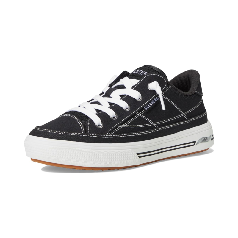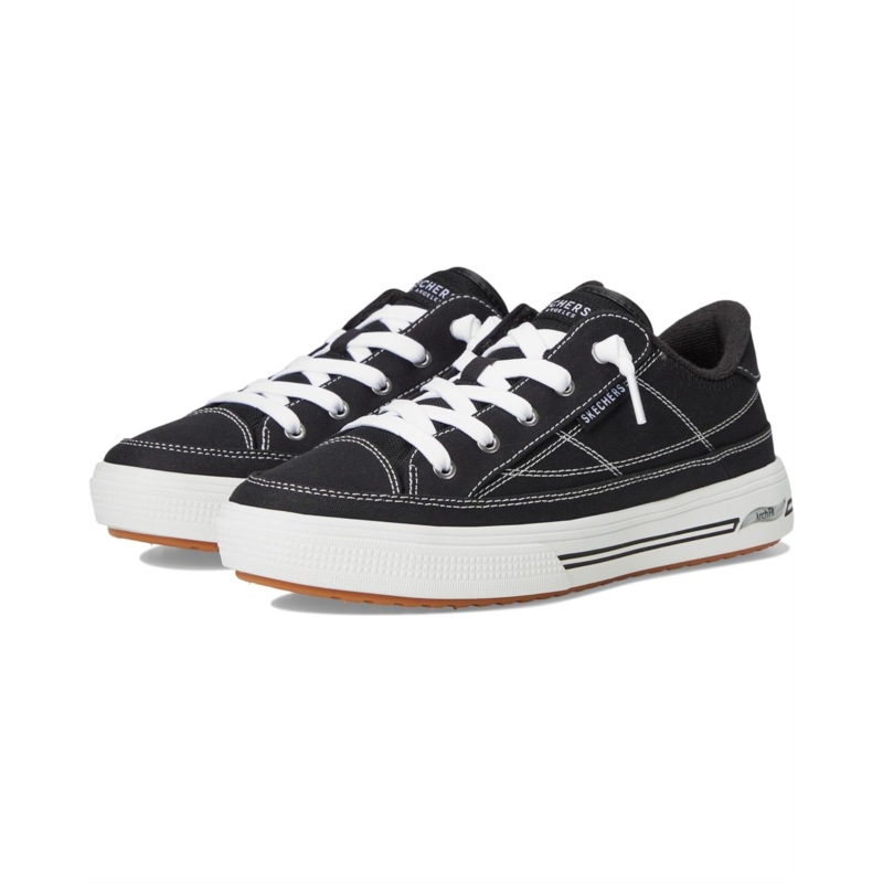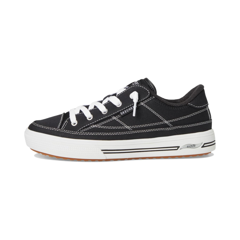 - Sporty and chic, the SKECHERS Arcade Arch Fit - Arcata Sneakers are perfect to amp up your streetkorea look. Crafted with vegan materials, the round-toe sneakers feature a canvas upper, polyester lining, lightweight cushioned insole, and Patented Skechers Arch Fit insole system with podiatrist-certified arch support. The removable textile insole helps mold to your foot to reduce shock and increase weight dispersion. Plus, the lace-up closure ensures a secure fit.
