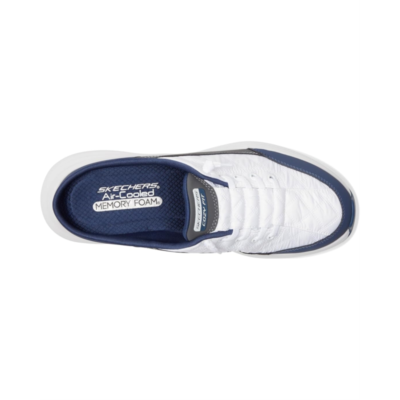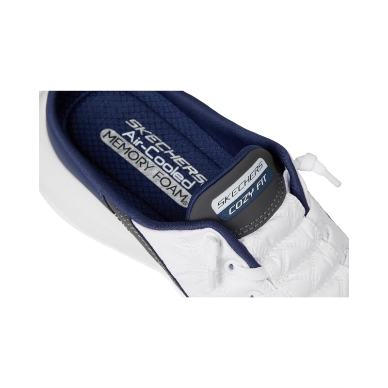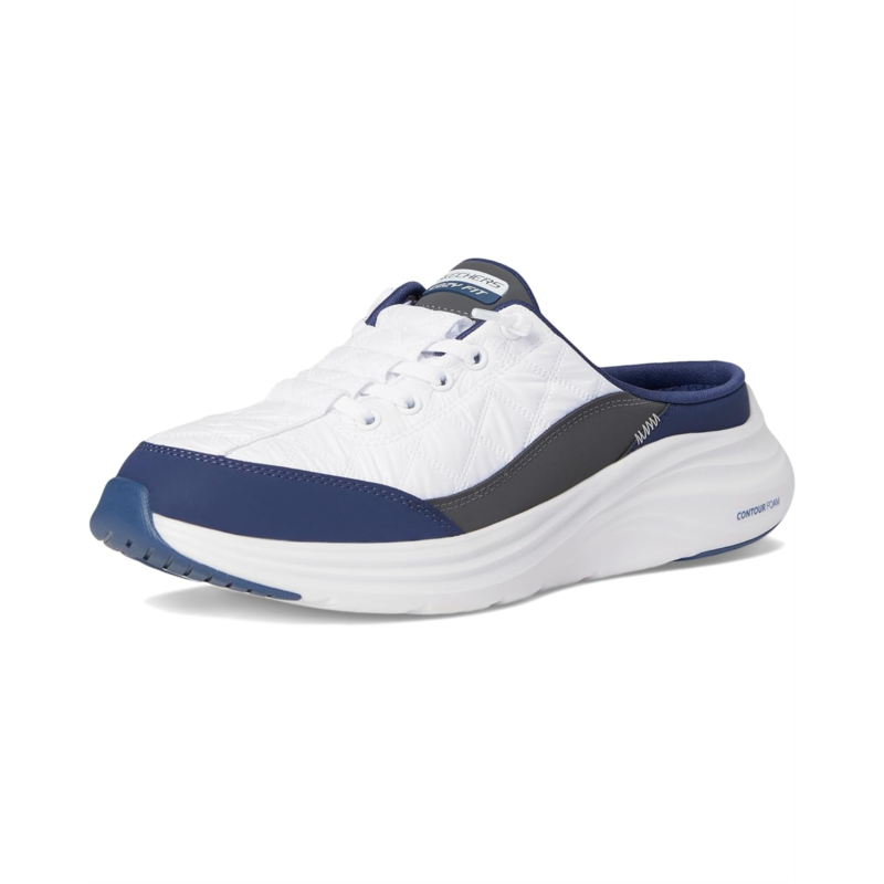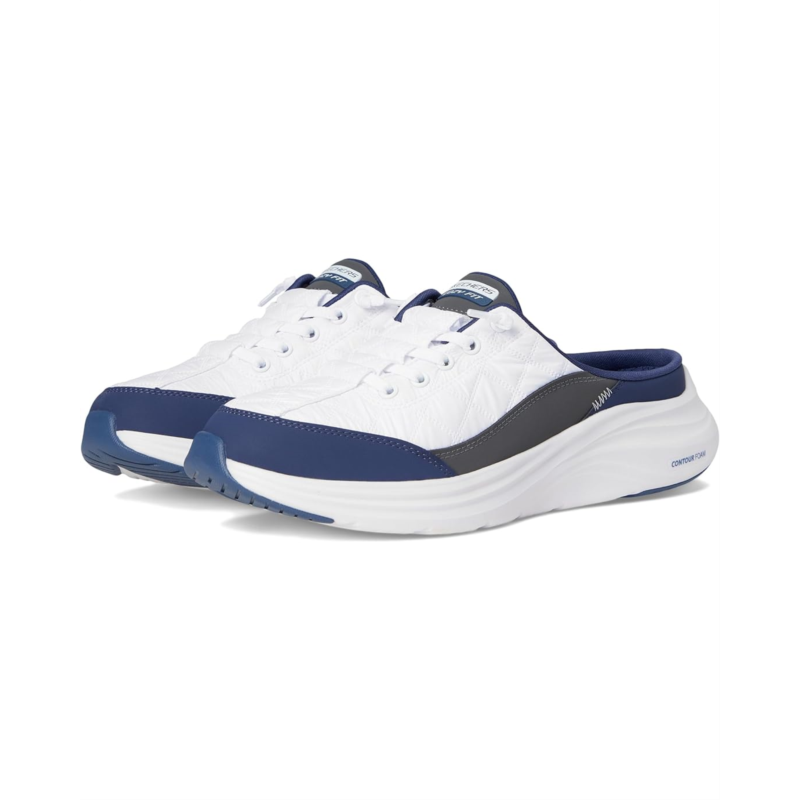 - Live in comfort and step out in style wearing Skechers Contour Foam - Cozy Fit. Designed for those who love the perfect blend of fashion and function, this slip-on sneaker offers a sleek lace design that gives a sporty touch while keeping convenience front and center. Featuring an innovative Air-Cooled Memory Foam comfort insole and ultra-lightweight vapor foam cushioning, every step feels soft, breathable, and endlessly supportive. The integrated Slip-Ins heel panel makes getting in and out a breeze, no bending, no fuss. Built with a durable rubber upper, insole, and outsole, this style is made to last, while the vegan construction offers an eco-friendly choice you can feel good about.