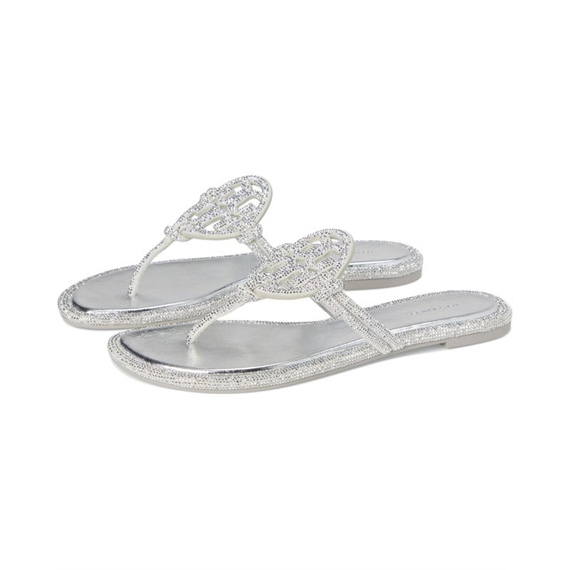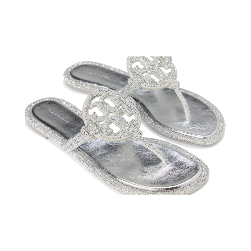 - Take your basic look to new heights with the uber-stylish Tory Burch Miller Knotted Pave Sandals. Crafted with the best-quality ovine leather upper, ovine leather lining, and a comfortable footbed, the sandals offer a lasting performance. These feature a toe-post closure with knotted straps anchor and signature logo detailing.