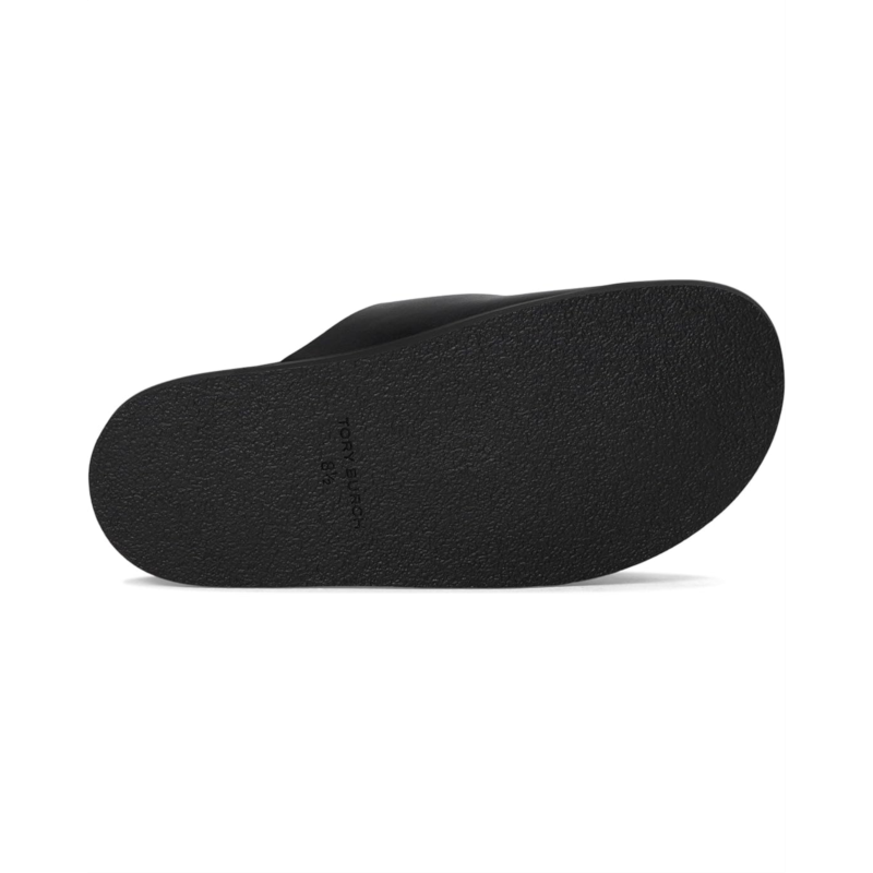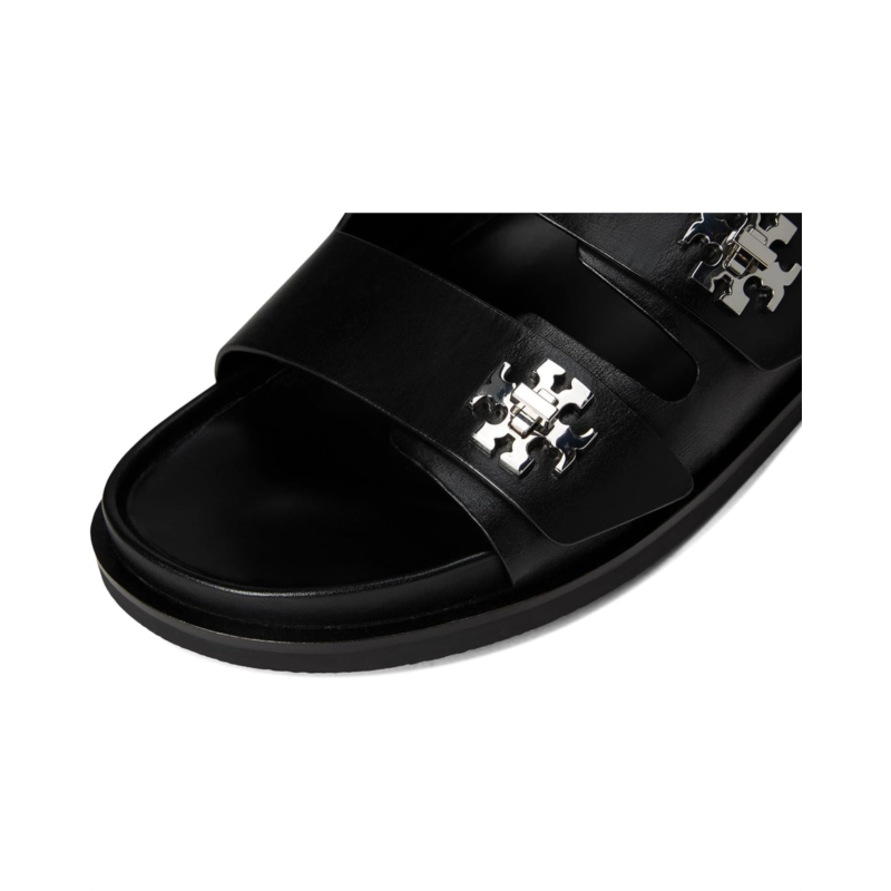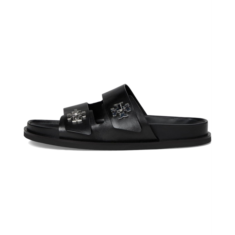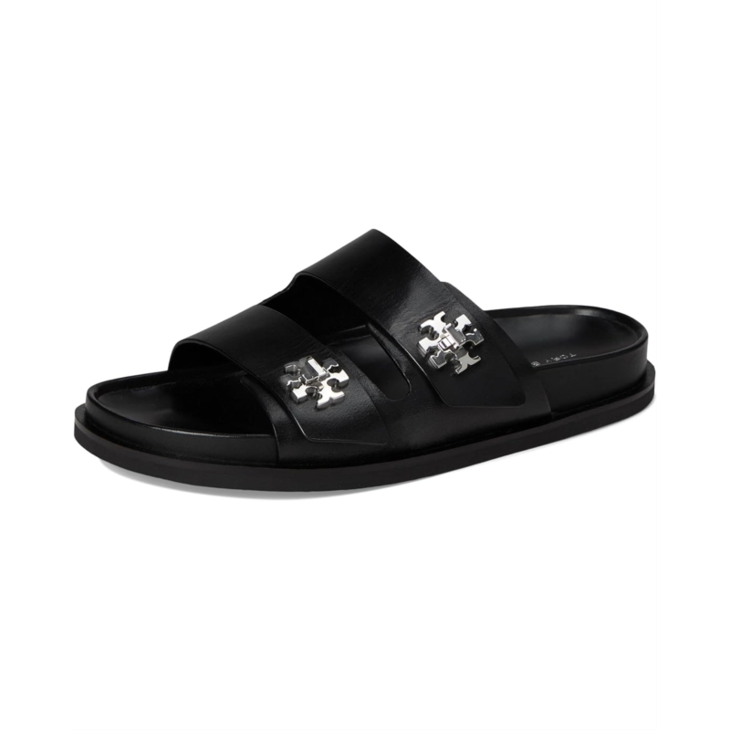 - Comfortable and stylish, the Tory Burch T Lock Sport Slides are designed for your everyday wear. These flat sandals are made of leather insole and lining. Their leather upper features dual hook-and-loop straps with signature details. These slide sandals are perfect to pair with your casual outfits and styles.