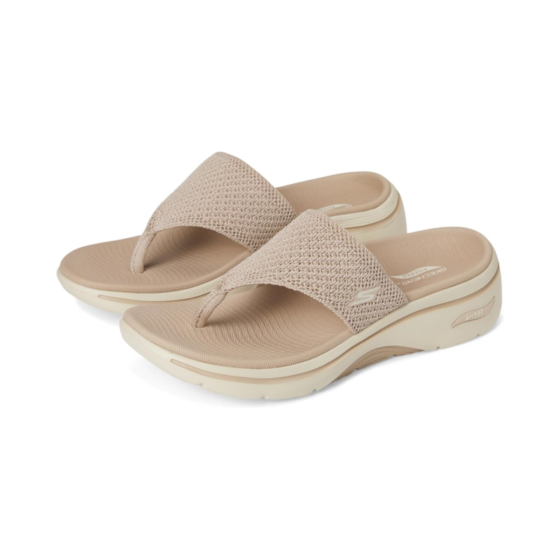 - Keep your feet happy in warmer weather with the SKECHERS Performance Arch Fit 2.0 Quick-Dry 3-Pt sandals. These thong sandals feature a quick-dry finished knit mesh upper, lightweight Ultra Go cushioning, and high-rebound comfort pillar technology. The patented Skechers Arch Fit Insole System with podiatrist-certified arch support provides all-day comfort and support. Machine washable and durable, these slip-on sandals are APMA-accepted.