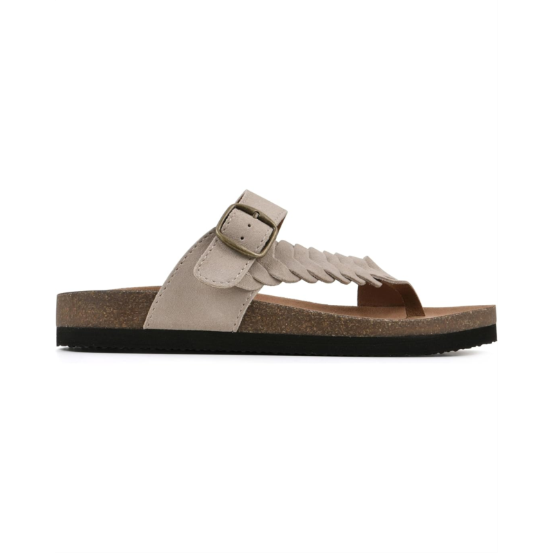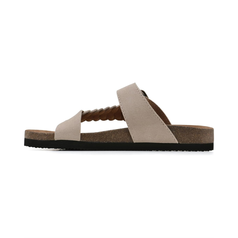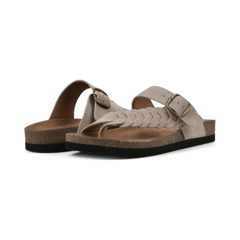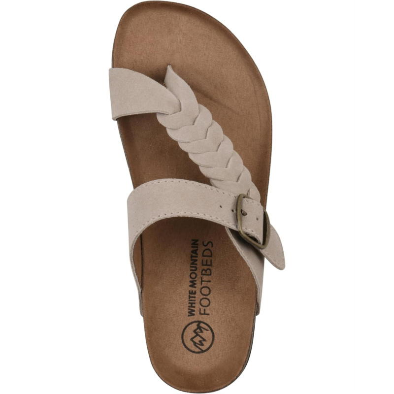 - Introducing White Mountain Happier, where comfort meets style in a blissful fusion. Crafted with a supple leather upper and cozy faux suede lining, it boasts a contoured footbed for unparalleled support. The adjustable buckle and woven strap design ensure a customizable fit, while the faux leather outsole and insole offer durability and lasting comfort.
