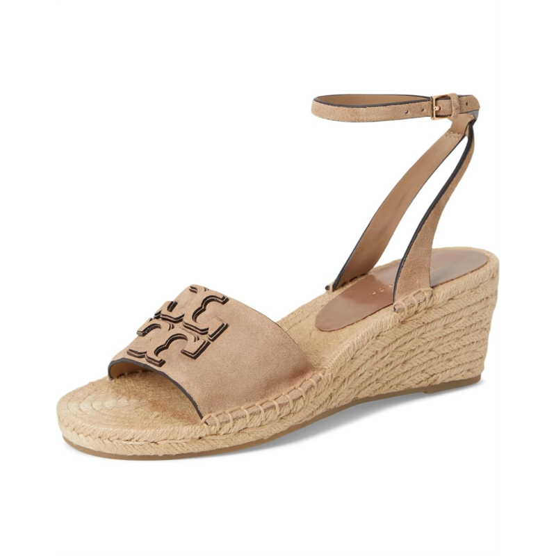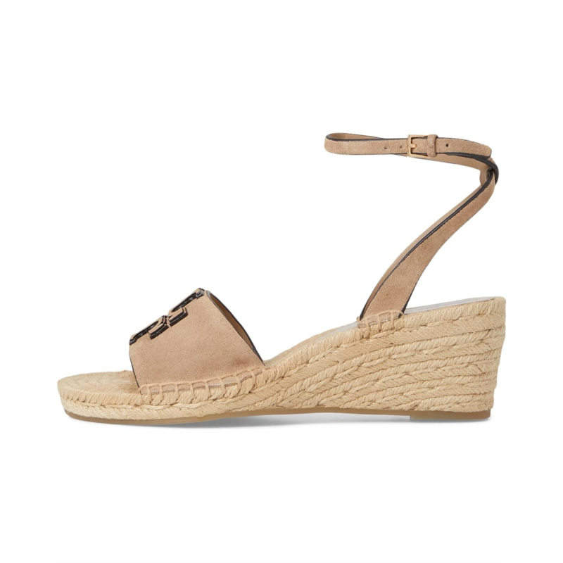 - When the resort season comes near, get hold of the Tory Burch 50 mm Ines Wedge Espadrille Heels that are truly amazing in terms of style as well as comfort. Showcasing a premium leather upper with double signature logo accents on the vamp and an adjustable buckle strap closure at the ankle, the shoes get a boho chic look with the lofty jute-wrapped wedge heel.