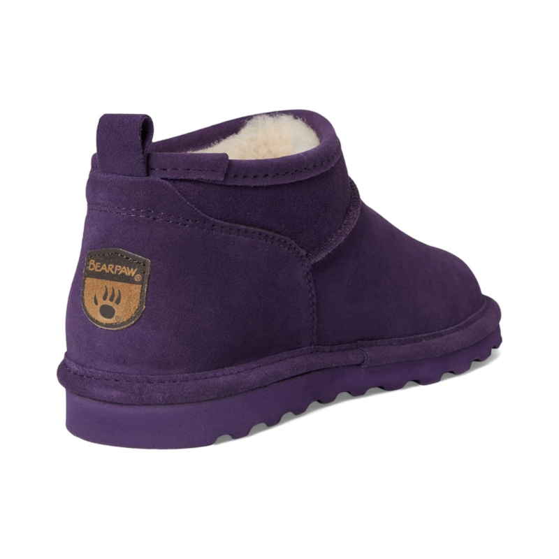 - The BEARPAW Super Shorty Shearling Style Boots feature suede upper construction treated with BearCoat rain and stain-repellent finish. Offering all-day comfort, this round toe pair features removable comfort sheepskin footbed and lightweight blown rubber outsole.